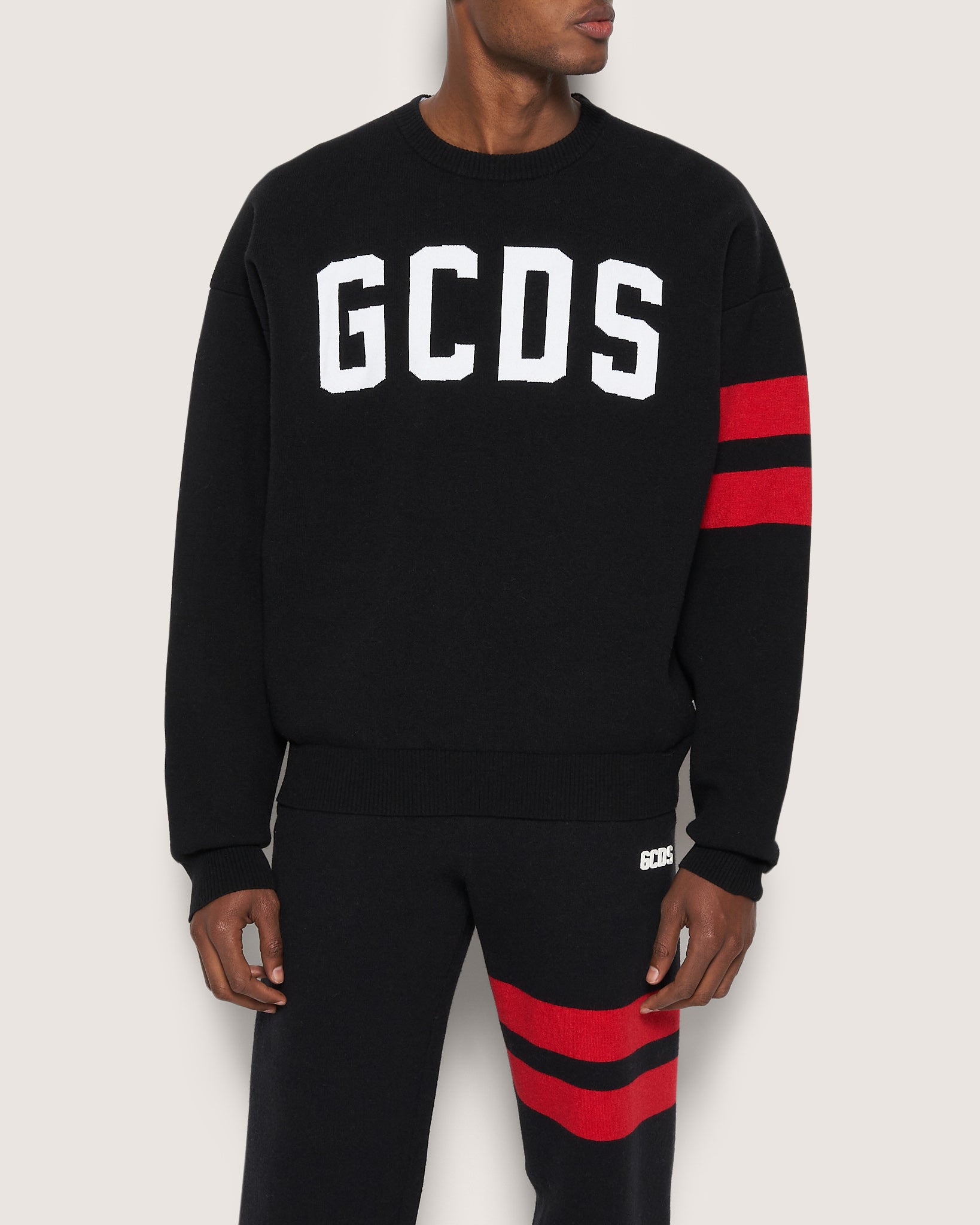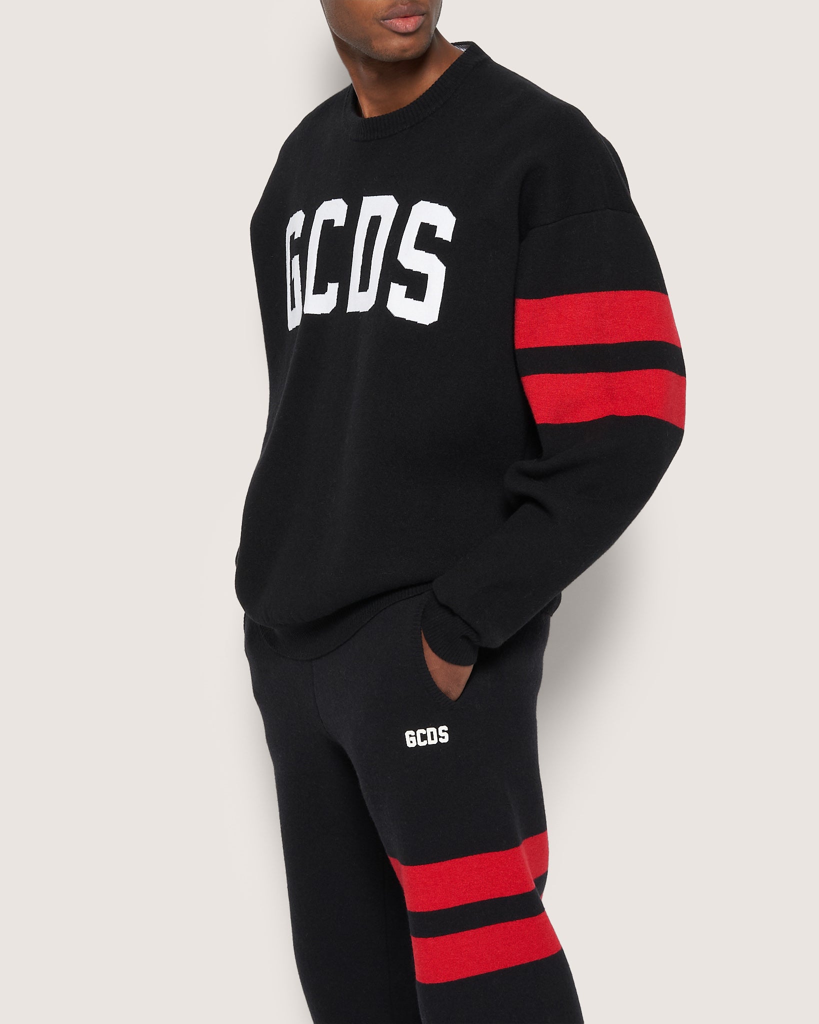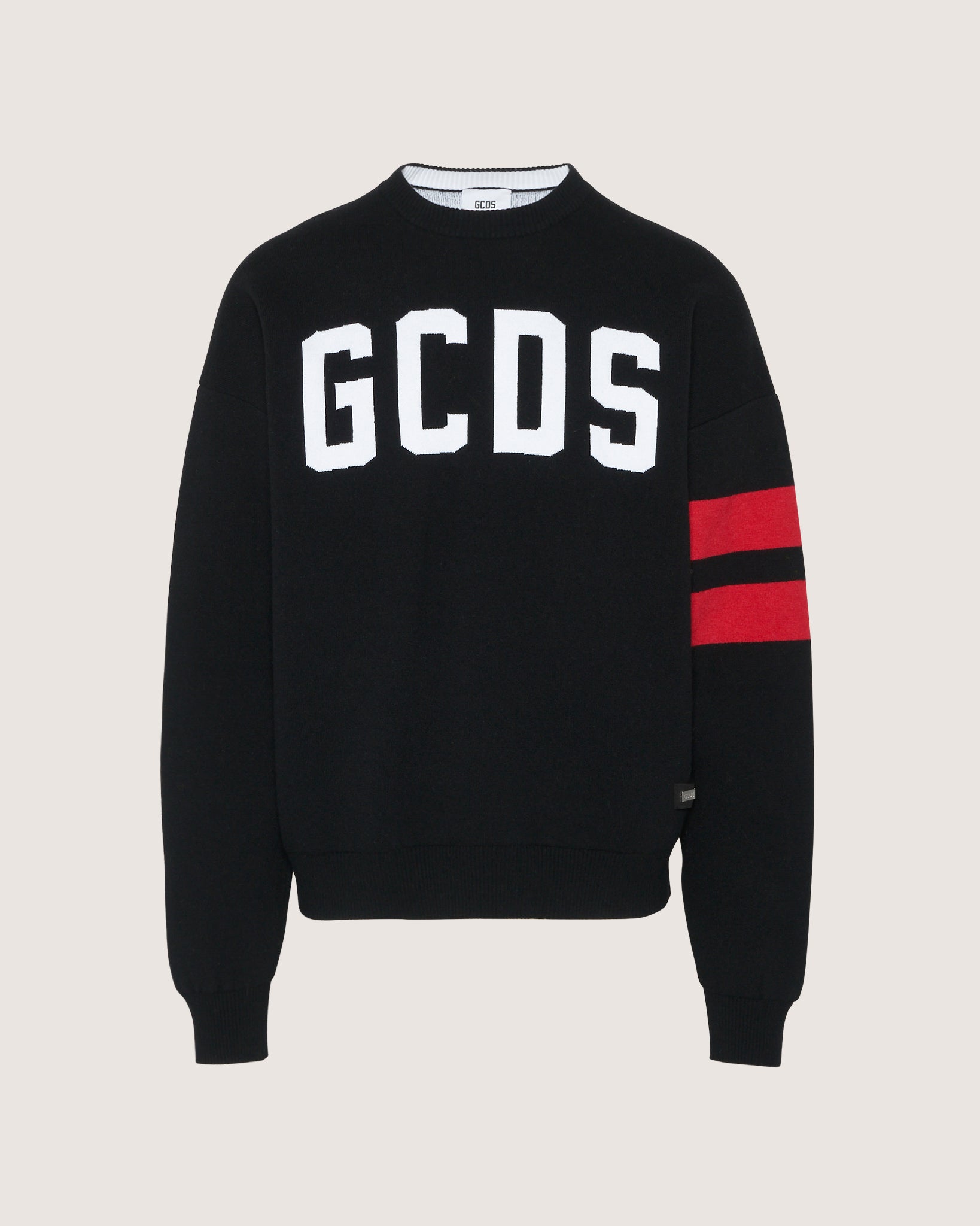 Carded jersey GCDS crew neck sweater, with inlaid logo artwork on front and inlaid double side band on left sleeve. Regular fit.
