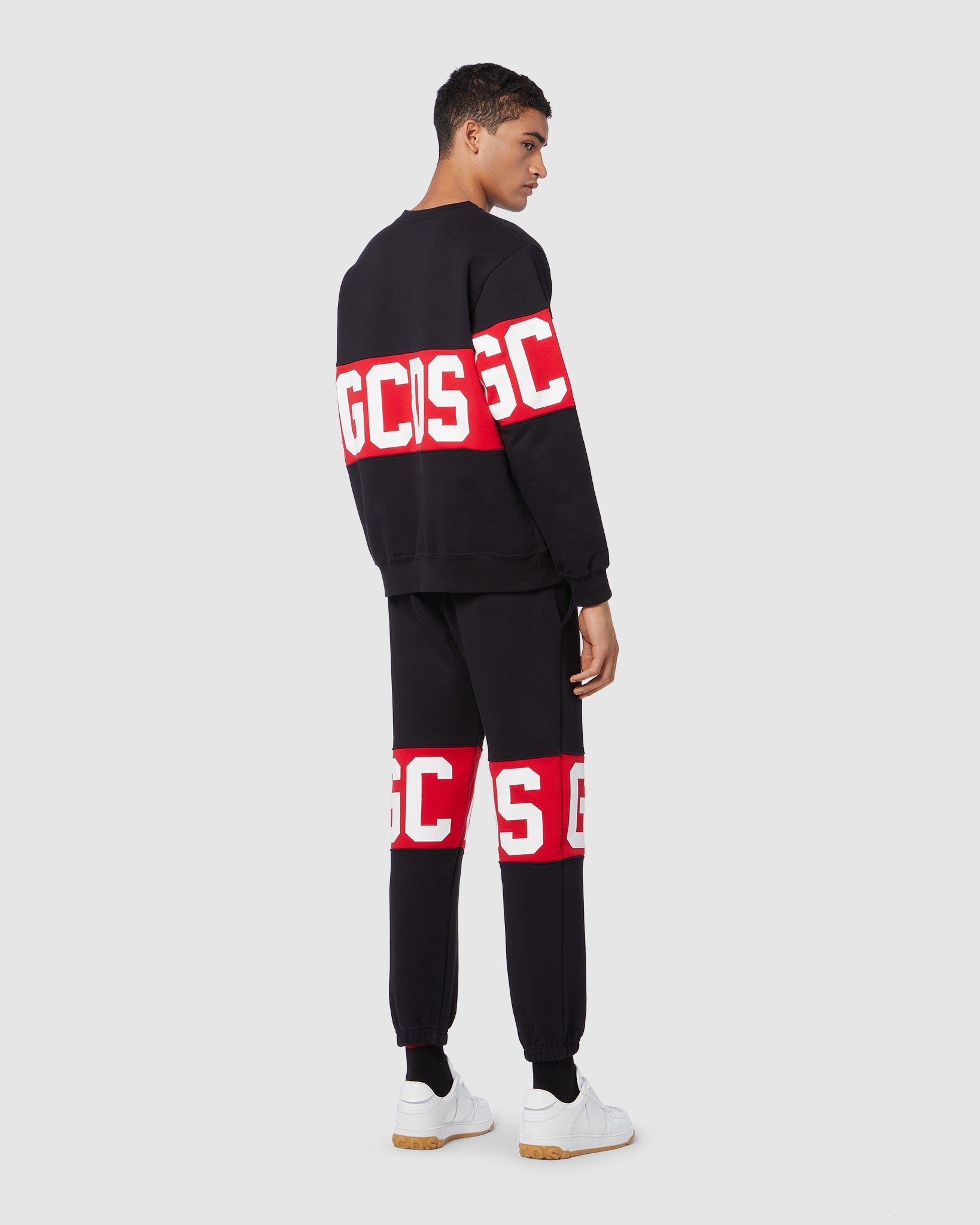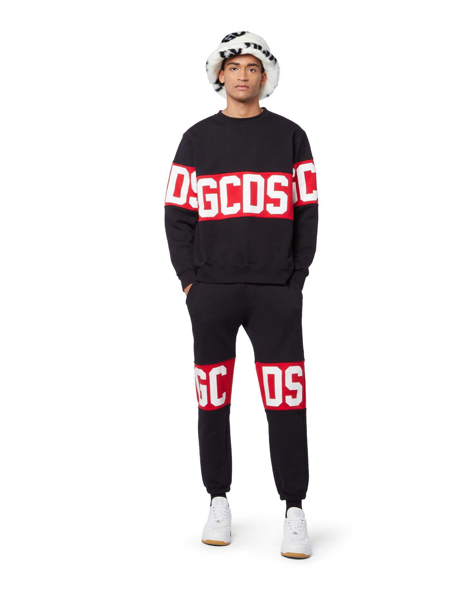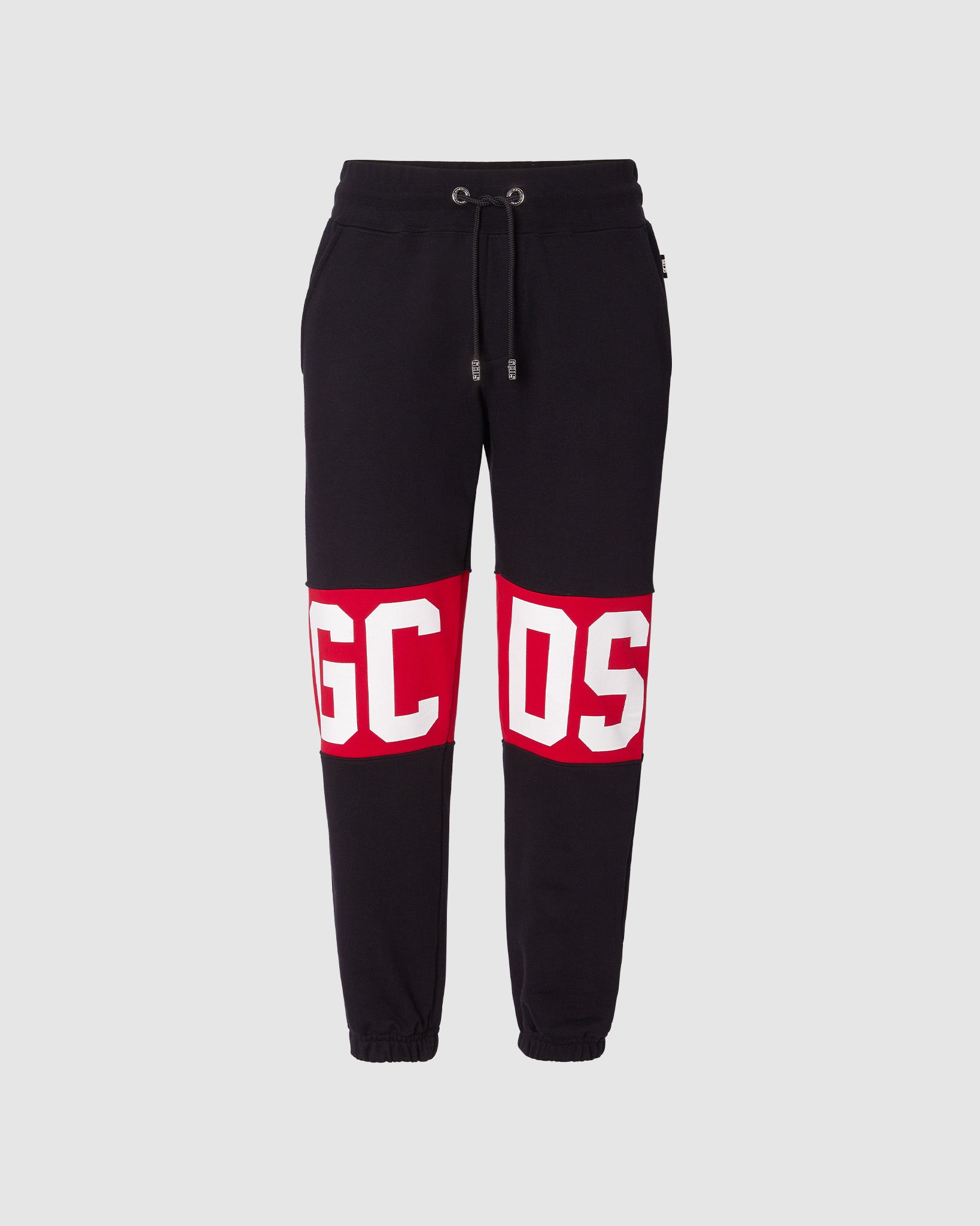 Cotton GCDS sweatpants with contrast inlaid logo band front and back. Slash pockets, elastic waistband and leg bottoms. Regular fit.