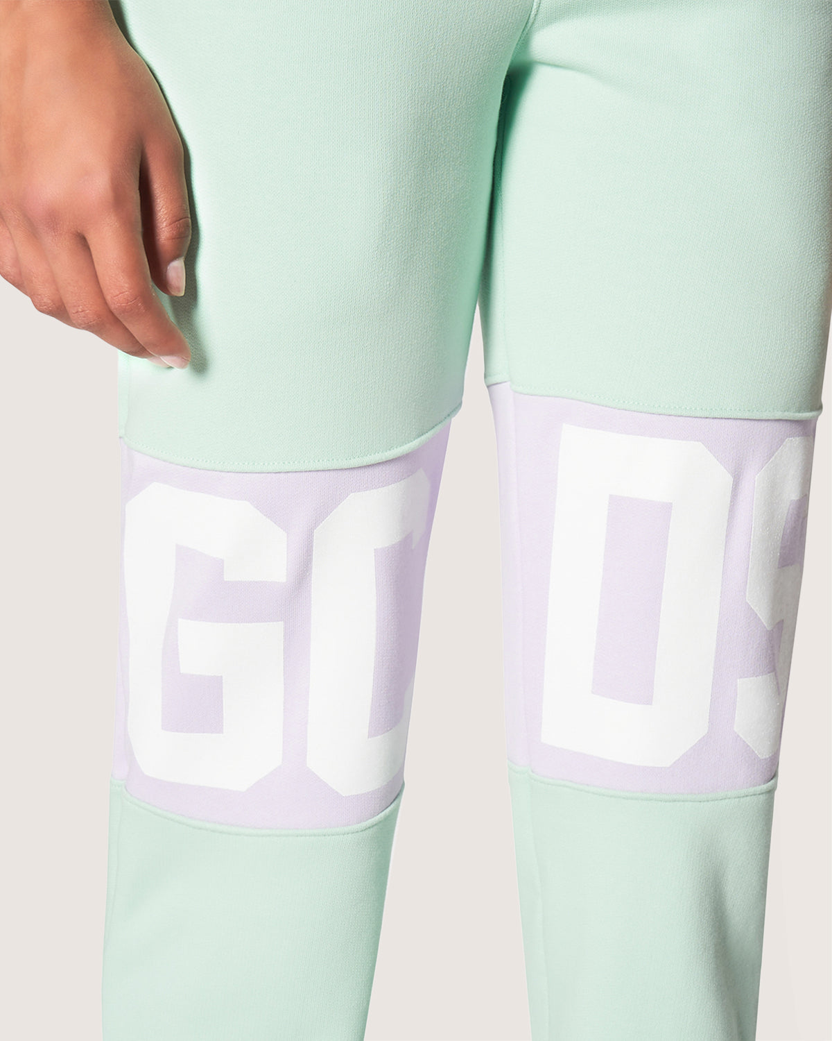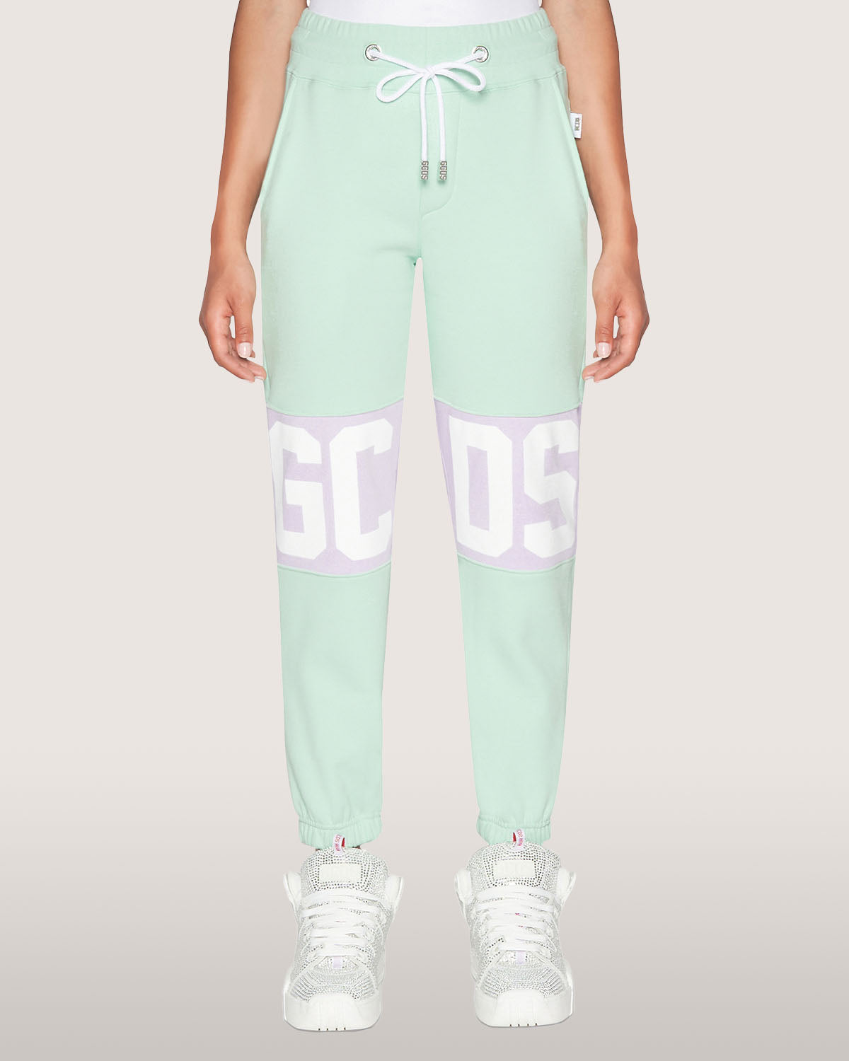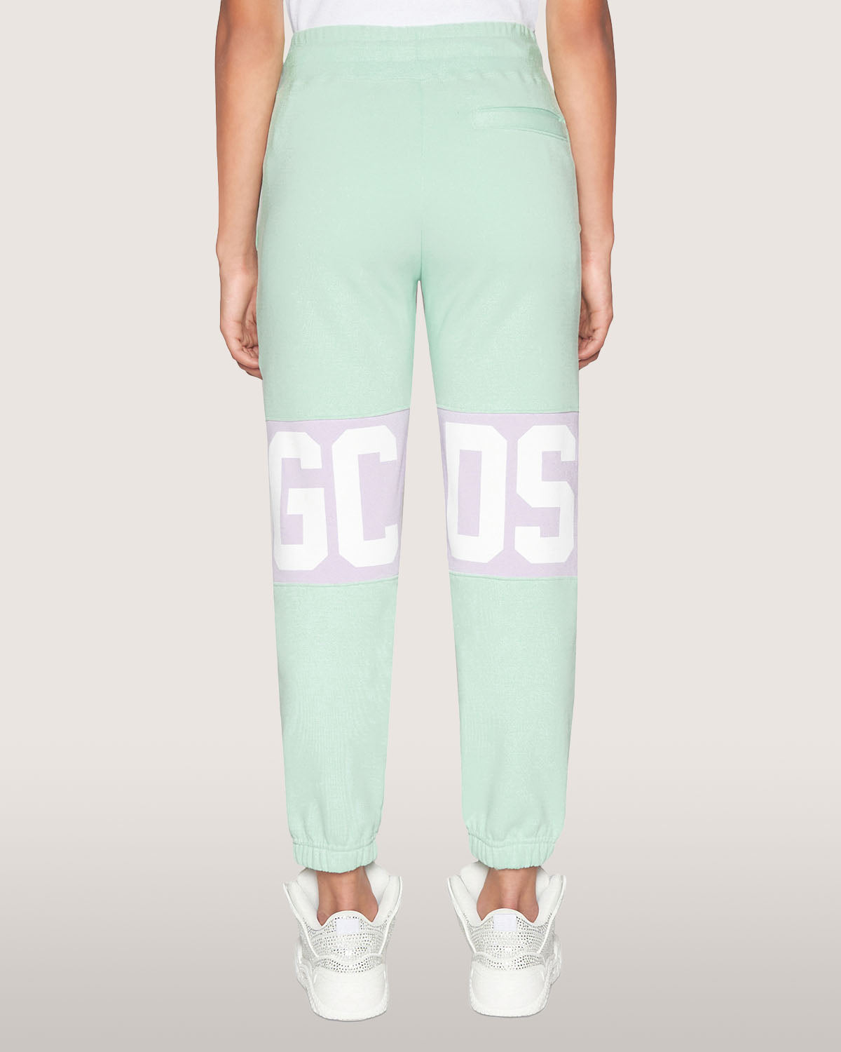 Trousers with GCDS logo band inlaid at front and back knee height.