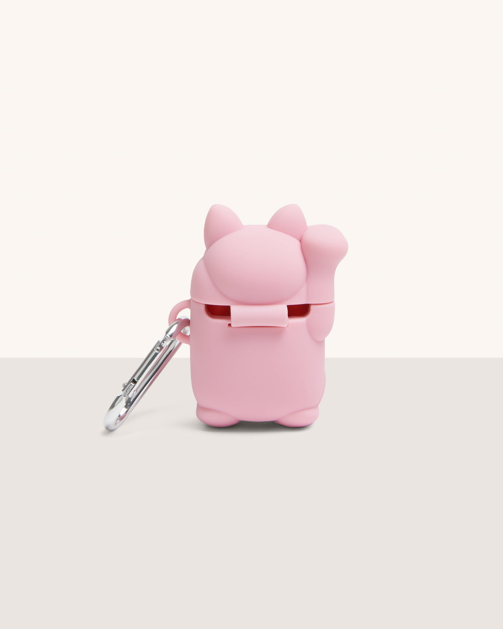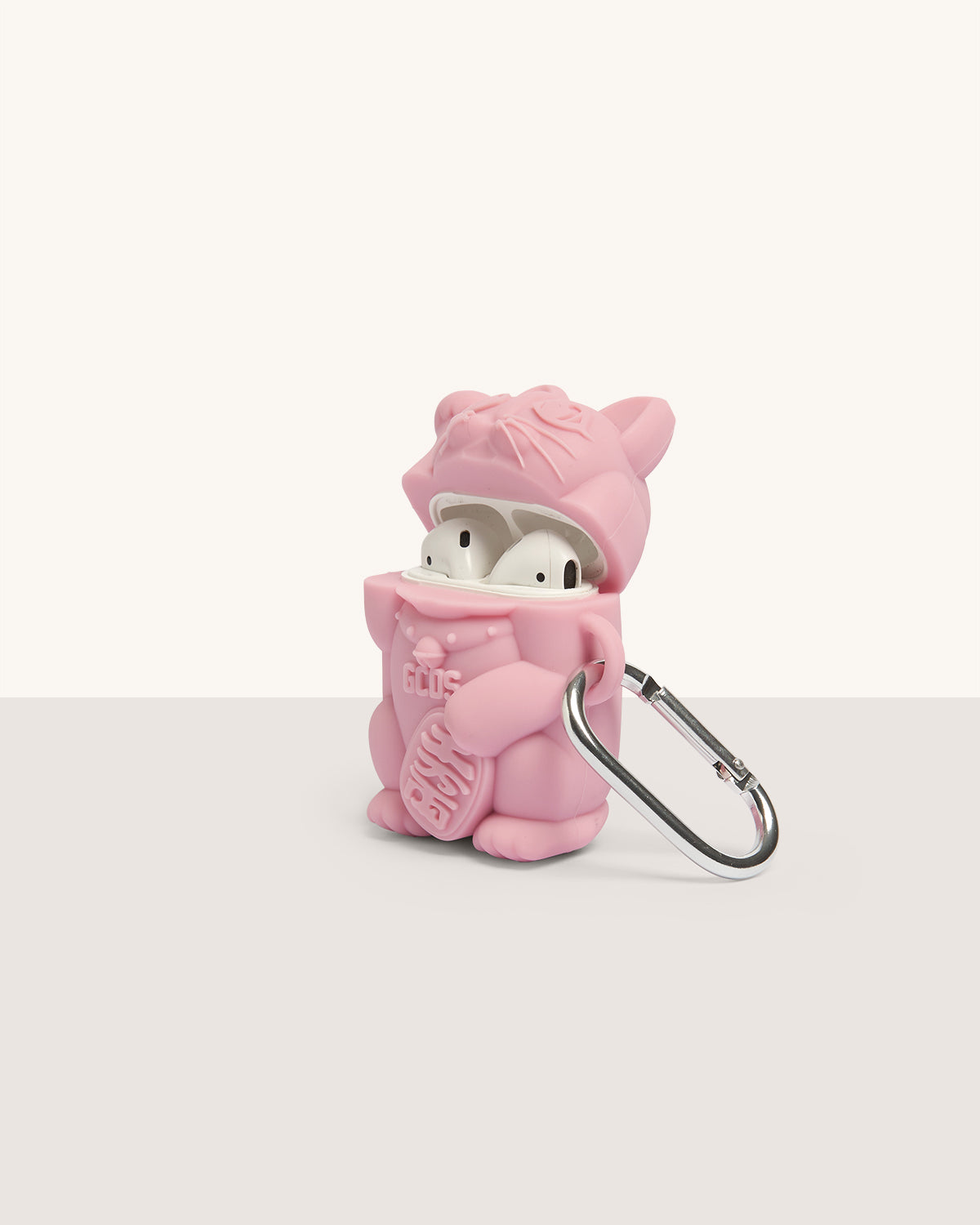 Cat-shaped earphone case with front logo and hook. Compatible with airpods.