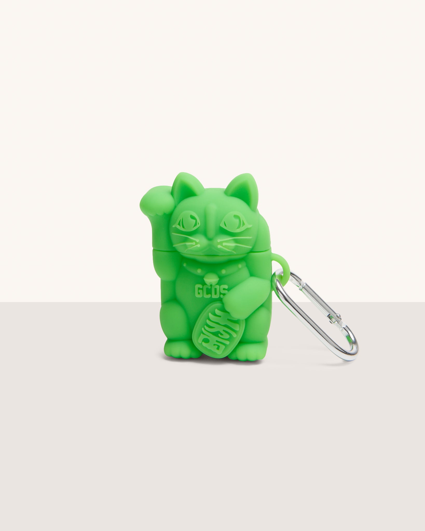 Cat-shaped earphone case with front logo and hook. Compatible with airpods.