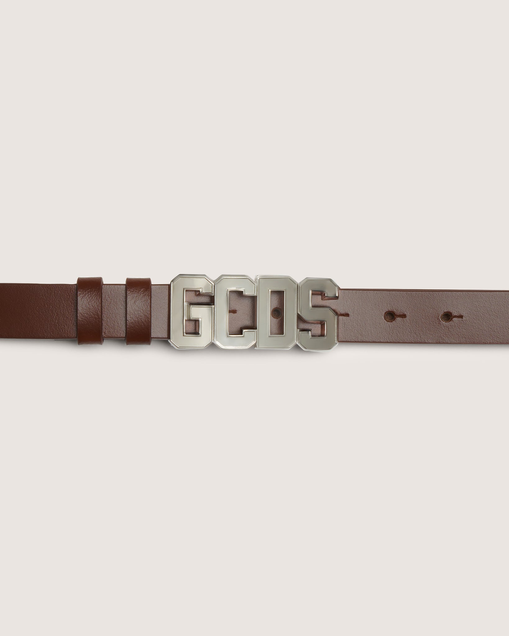 Leather GCDS belt with loops. Closure set with nickel GCDS logo buckle.