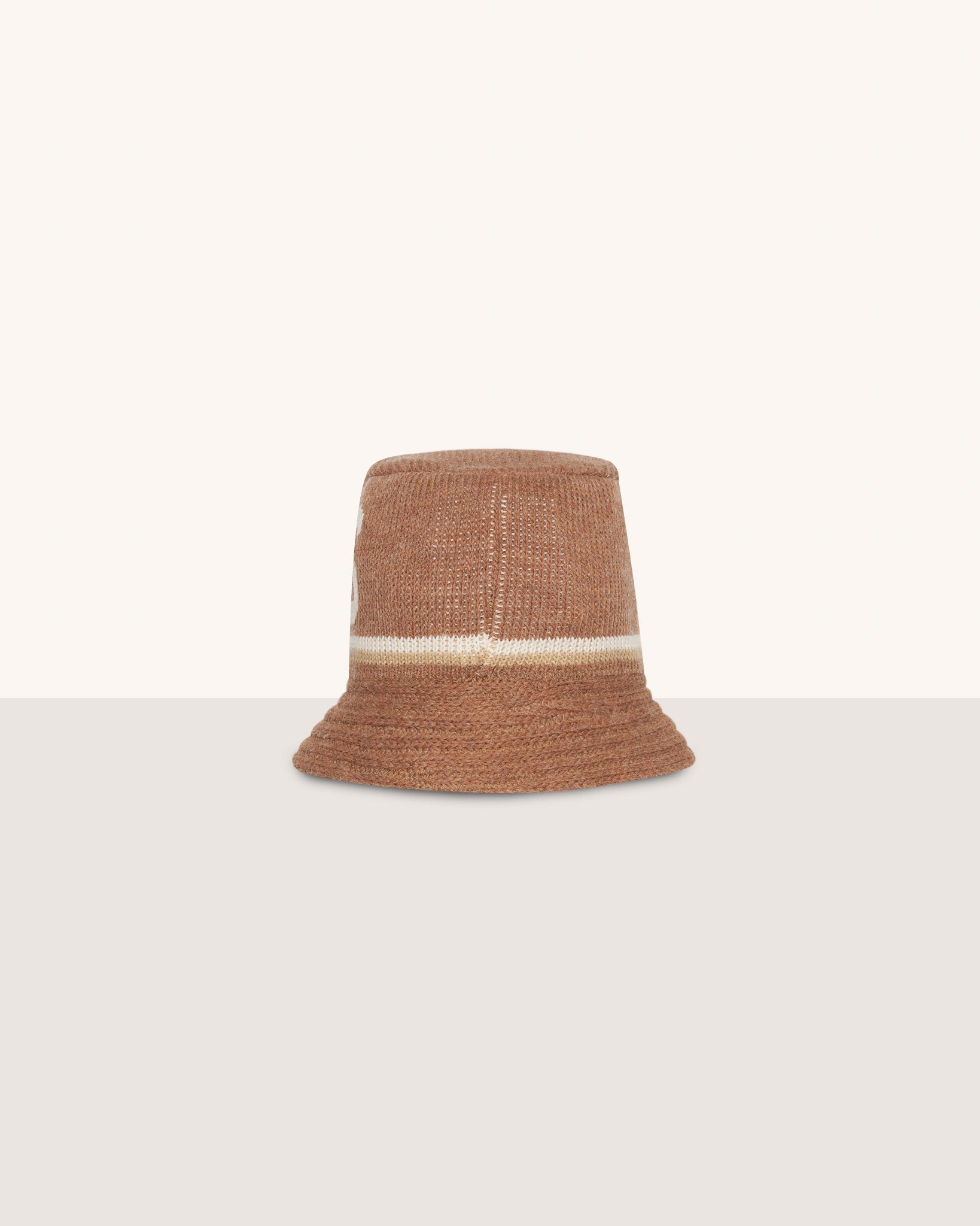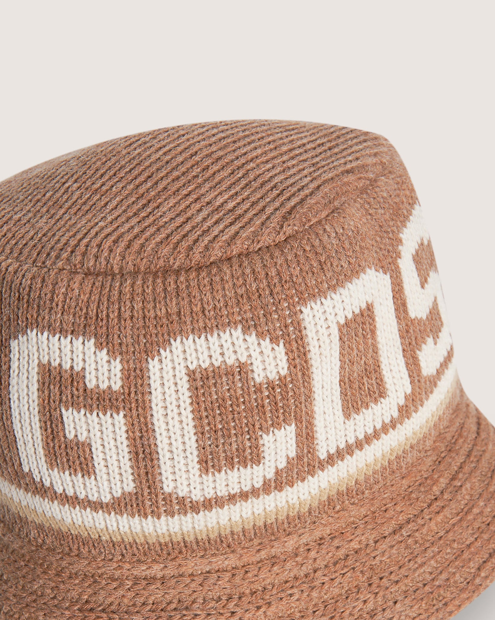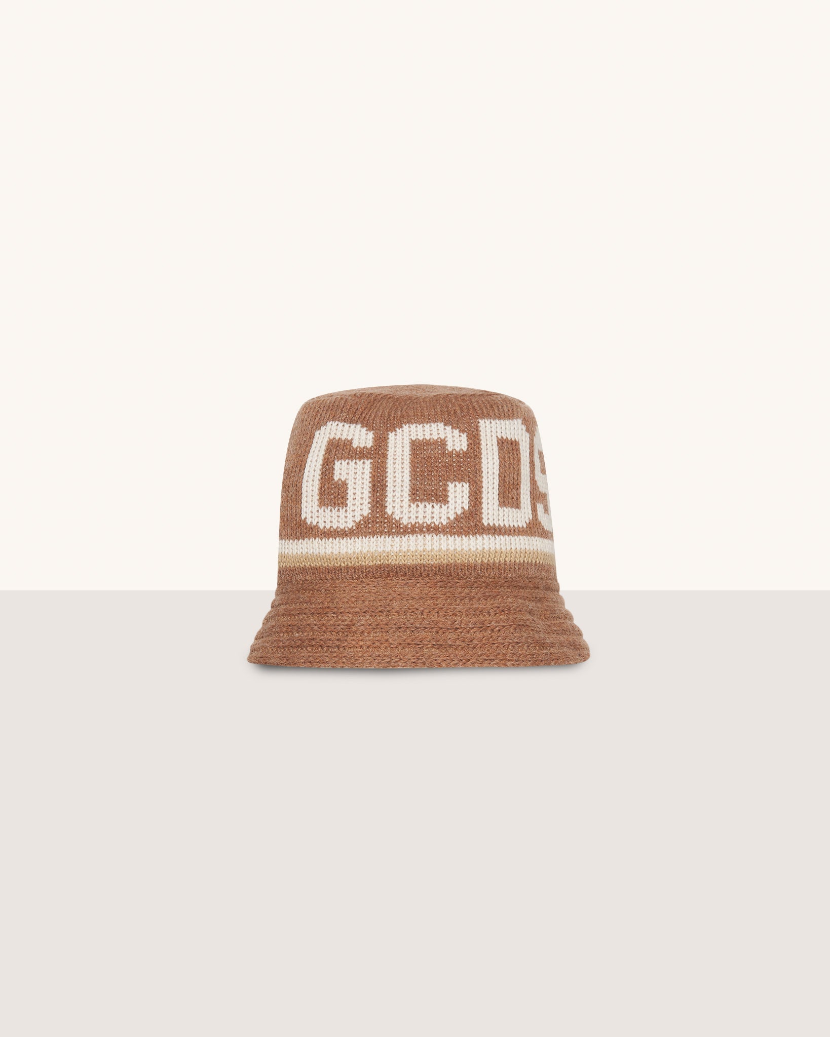 Soft GCDS fisherman hat, in jersey knit, with contrasting jacquard GCDS logo. On the brim stitched knit braids.