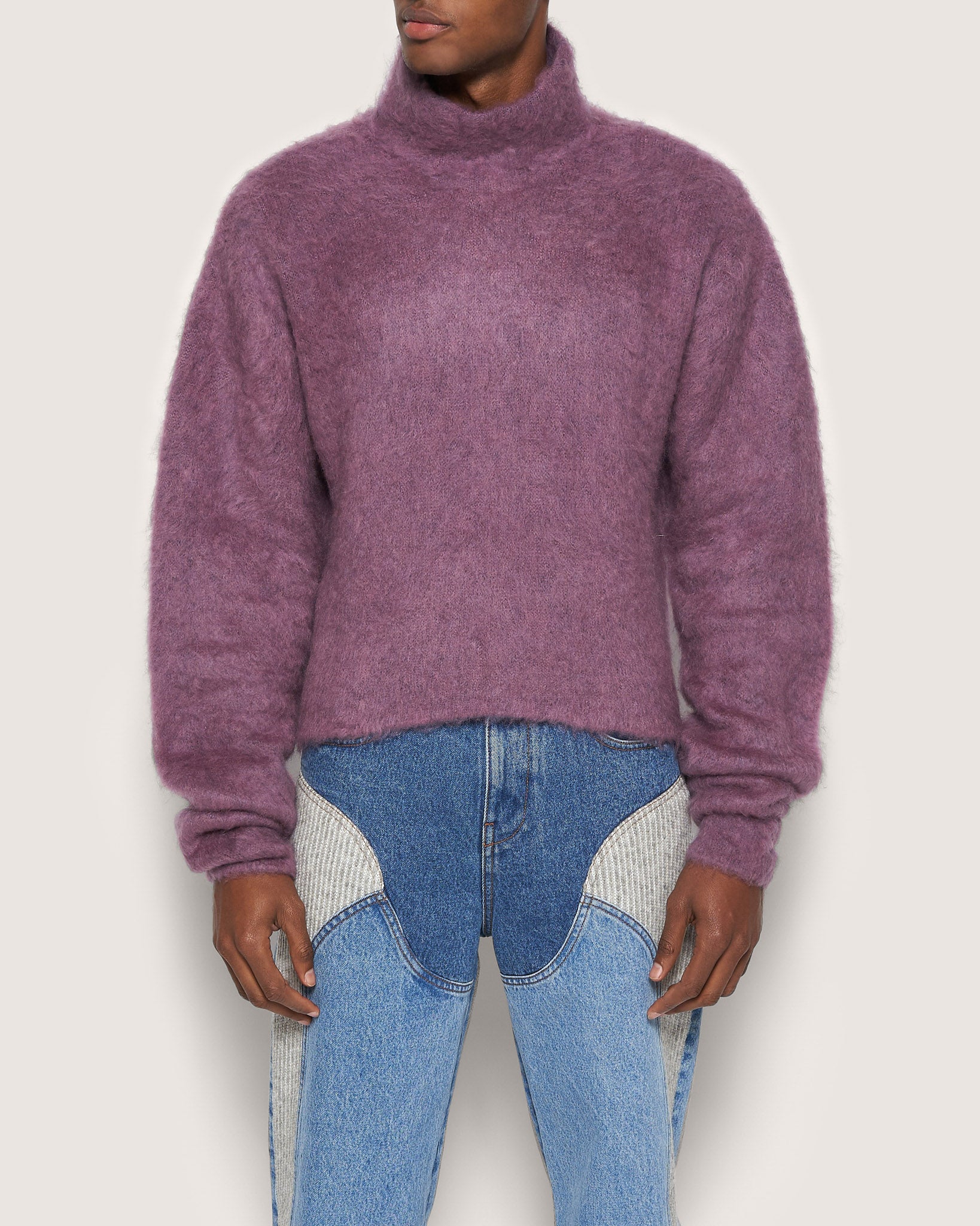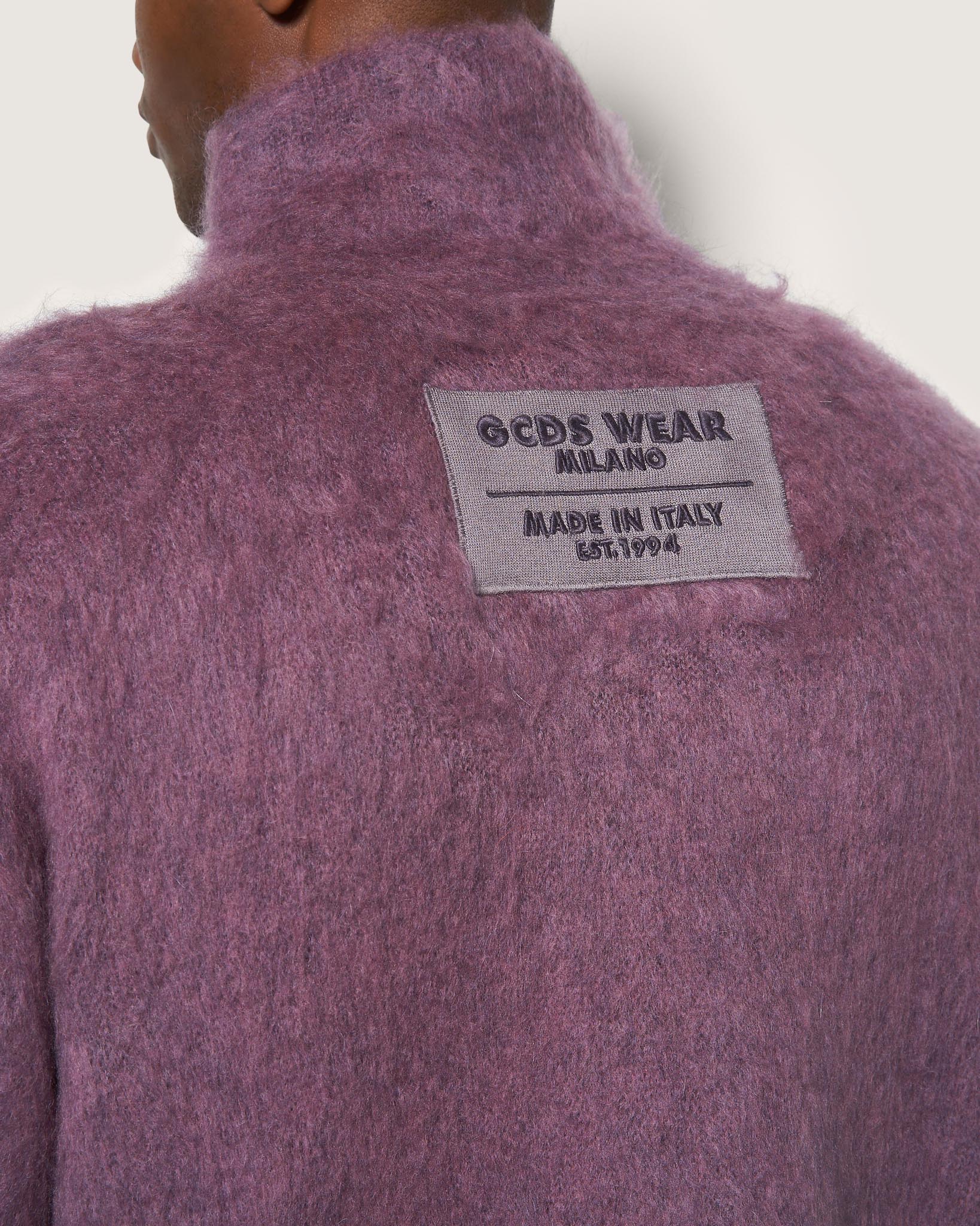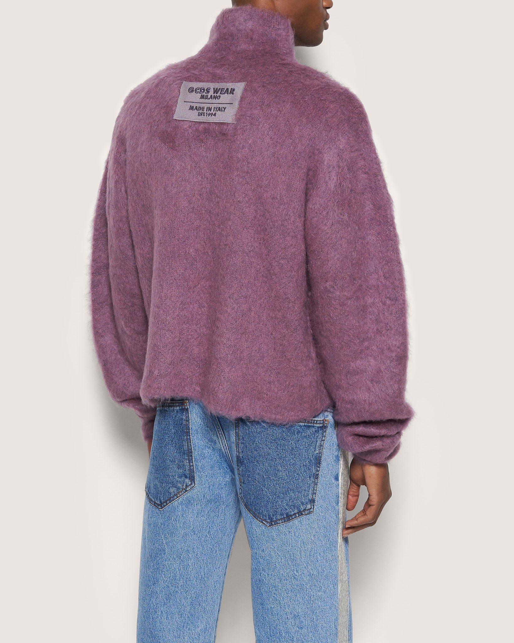 Long sleeve, mohair turtleneck GCDS sweater. On the back center, under the collar, embroidered knitwear logo patch. Square cut.