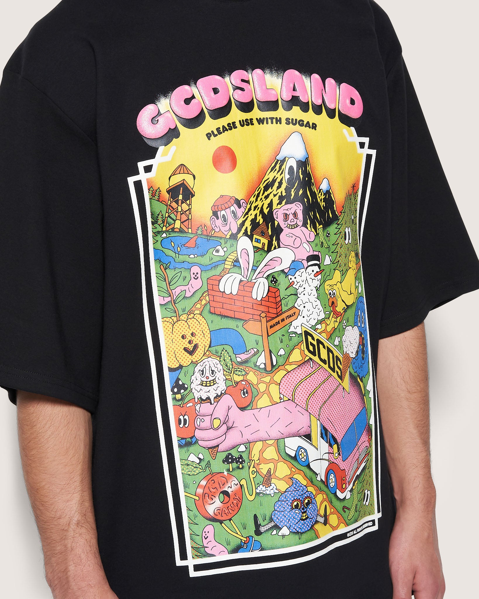 Cotton GCDS T-shirt. On the front, GCDSLAND artwork with puffy silkscreen logo. Over-sized.