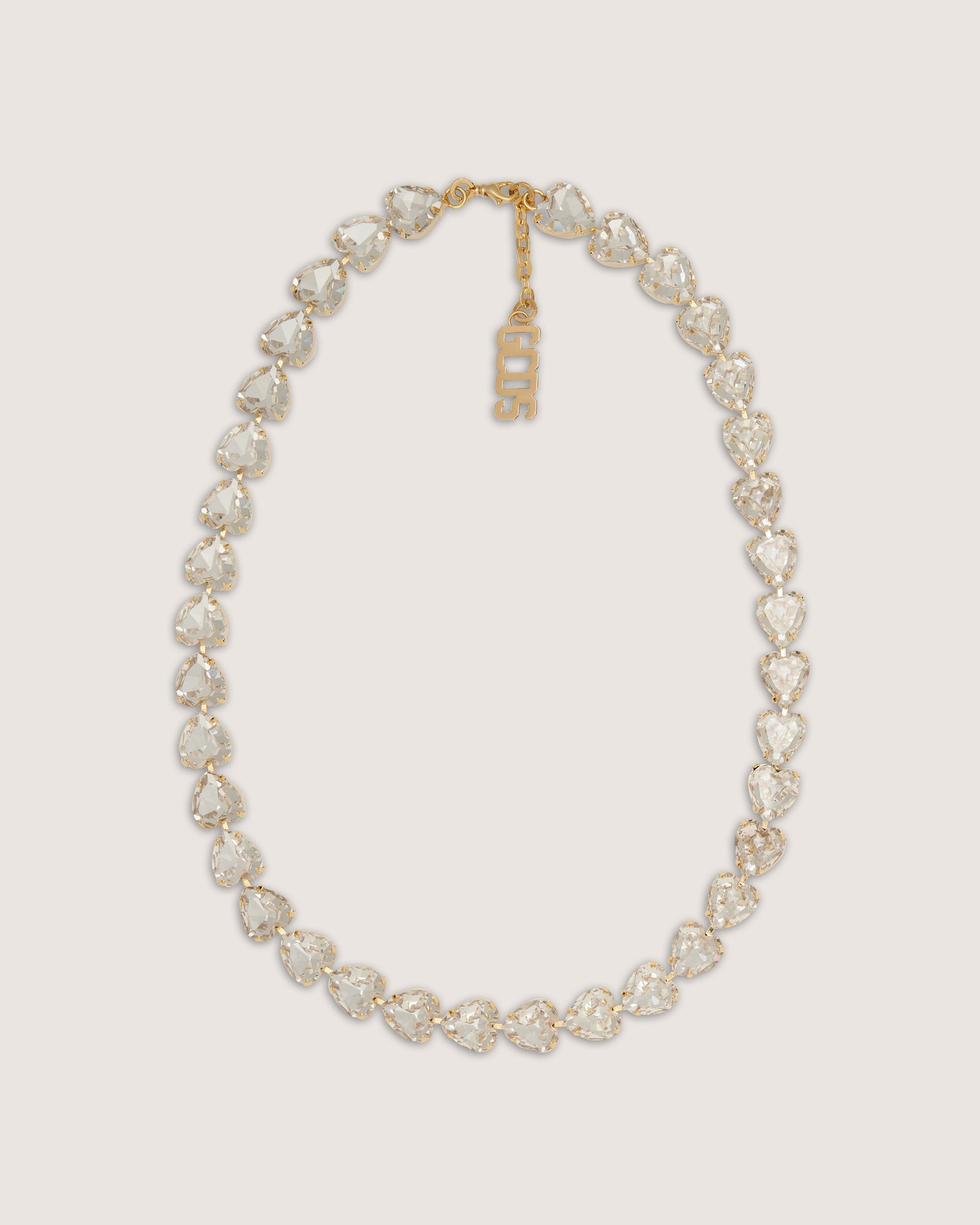 GCDS choker made with rhinestone heart chain.