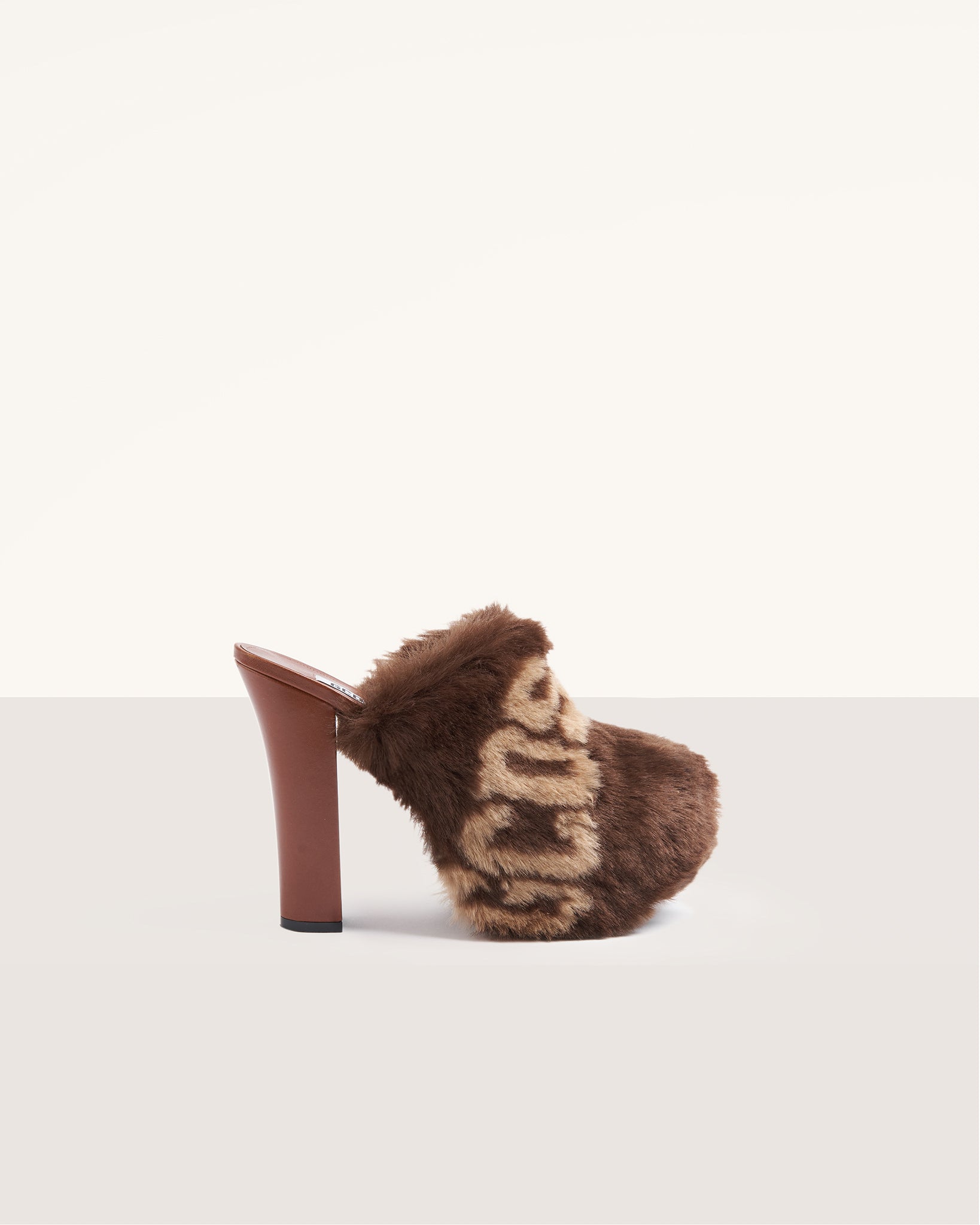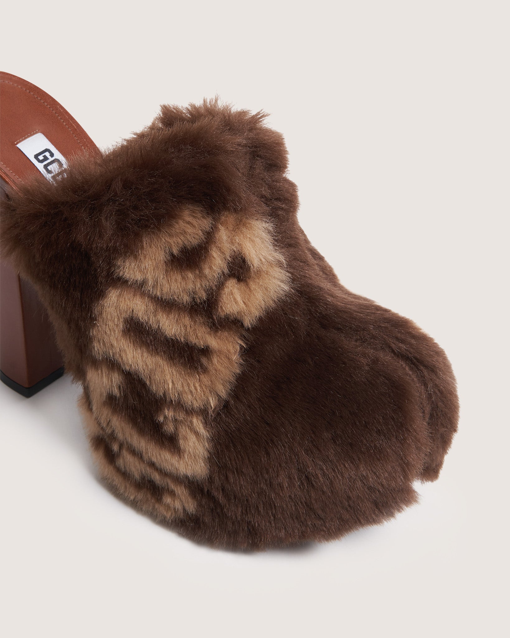 Platform faux fur GCDS clog, maxi logo chain on the front.
