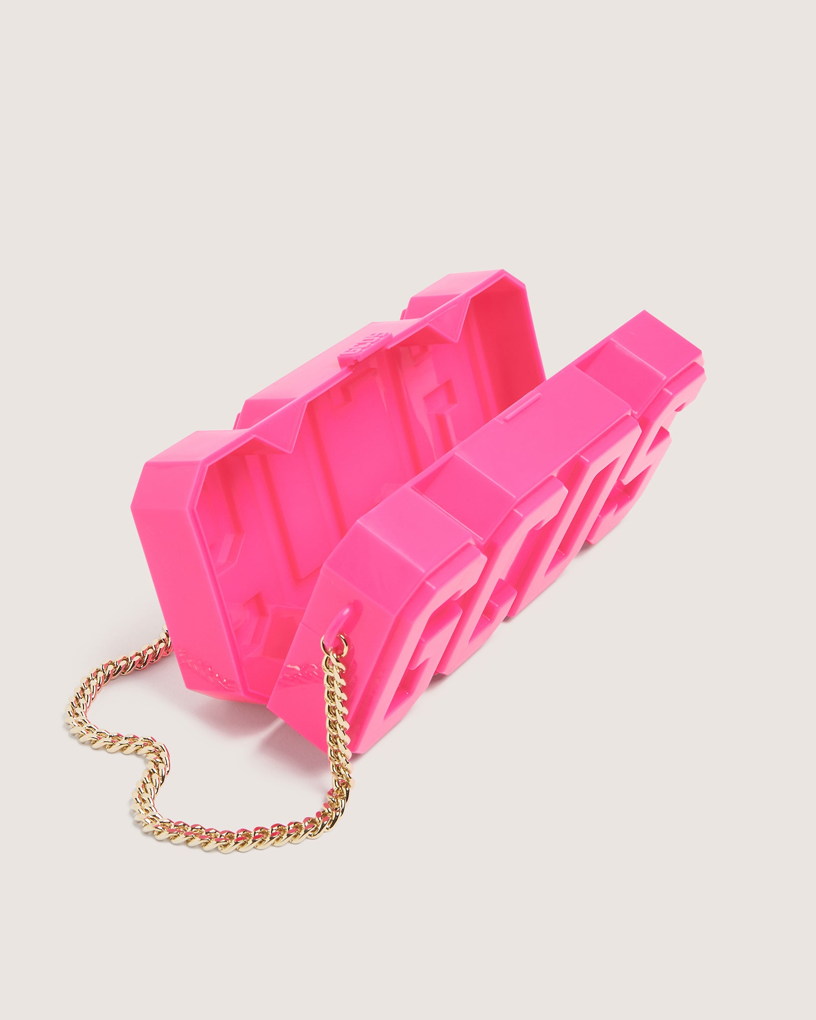 GCDS Logo Plexi Bag with gold chain.