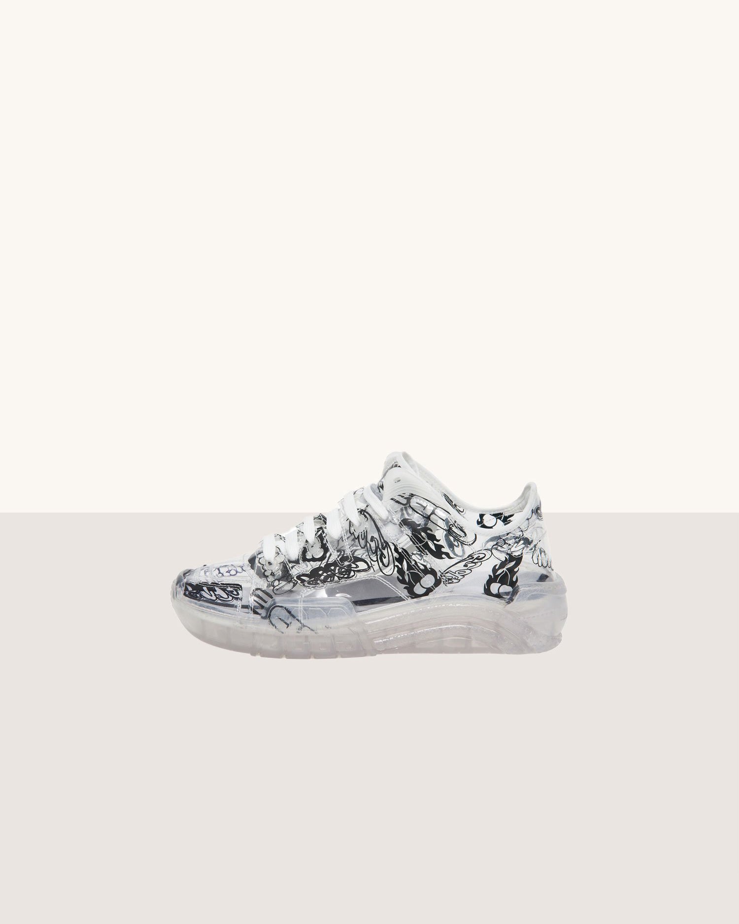 Skip to contentSneakers with logo rubber sole in transparent version and allover print.