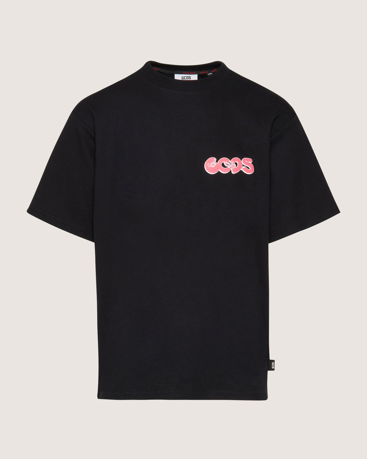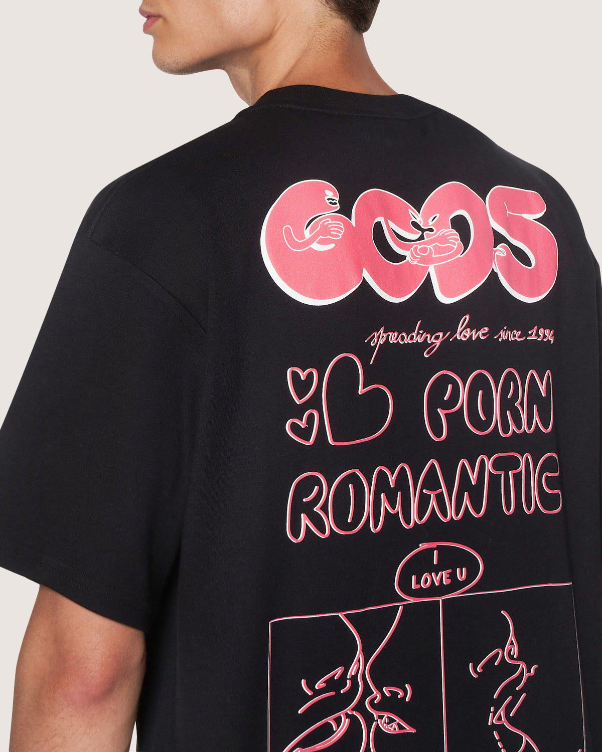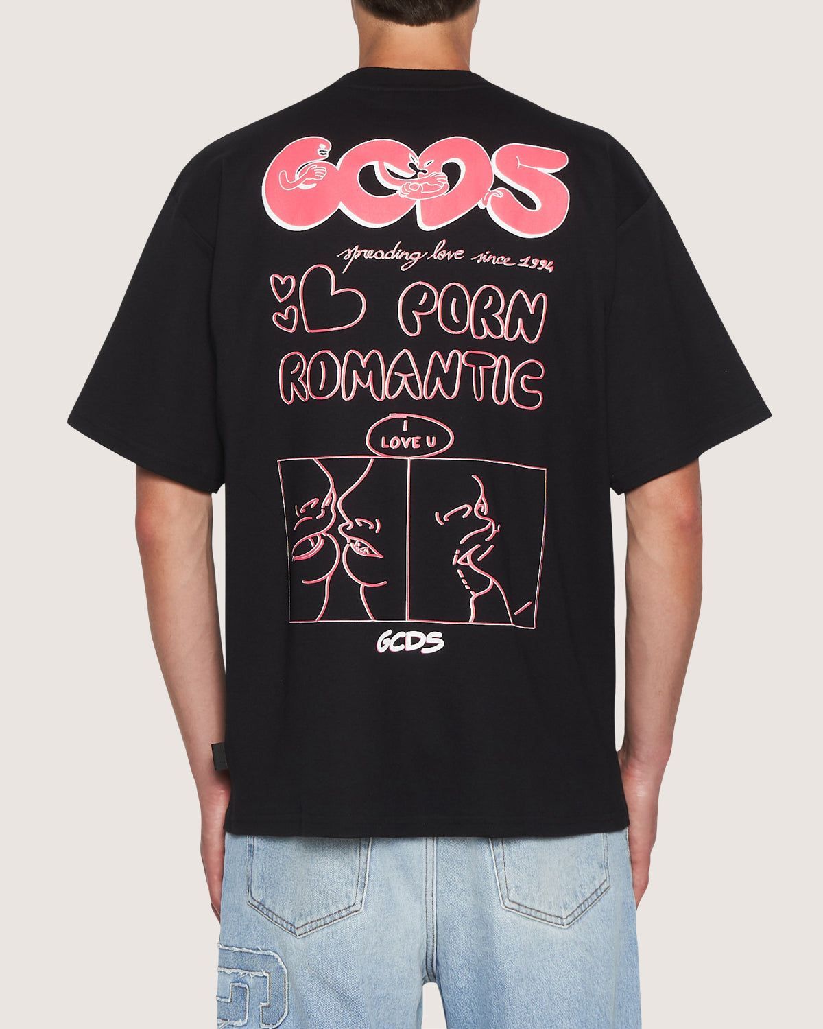 Cotton T-shirt with Porn Romantic print on the back and GCDS logo on the front.
