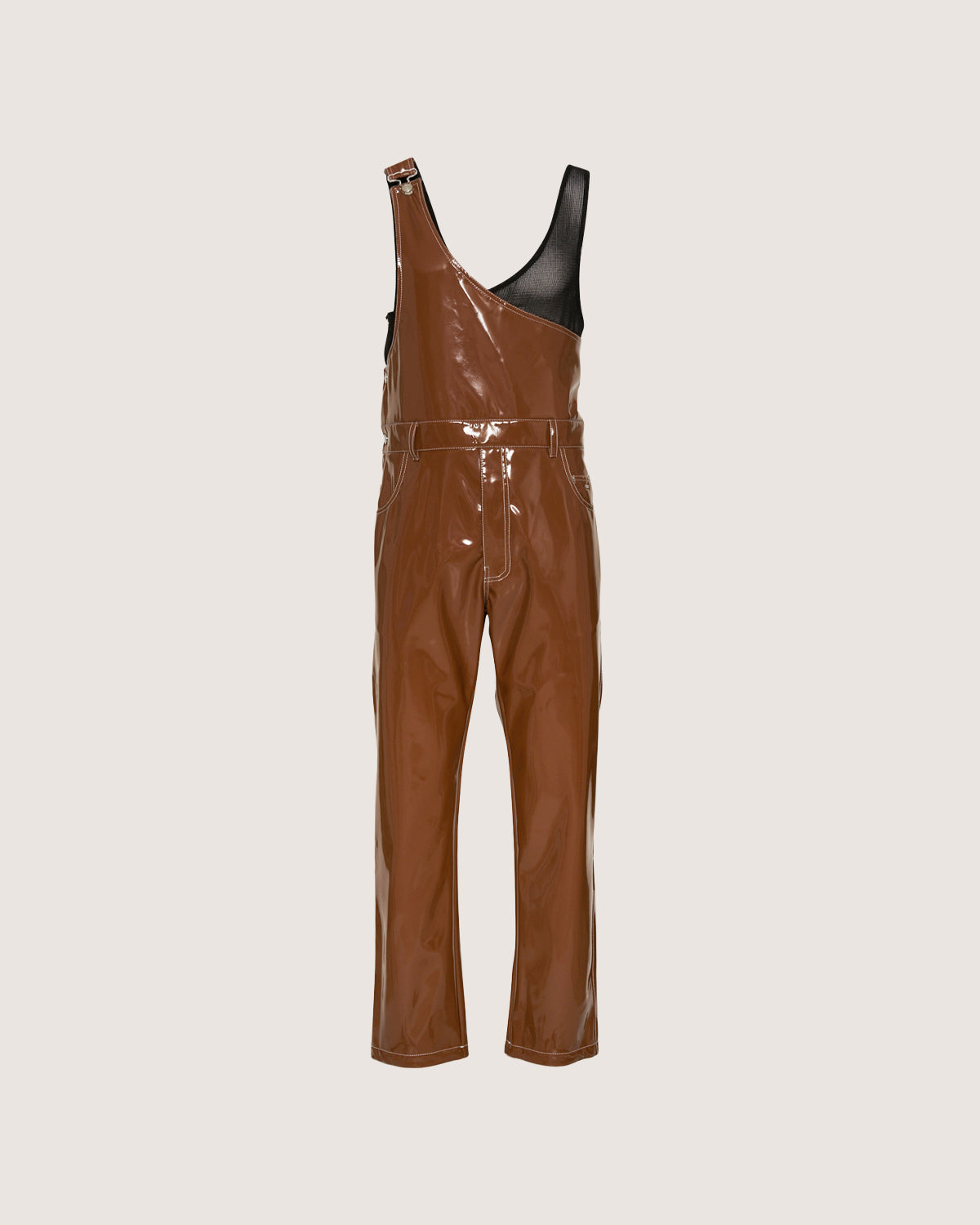 Glossy vinyl dungarees with GCDS patch on the back.