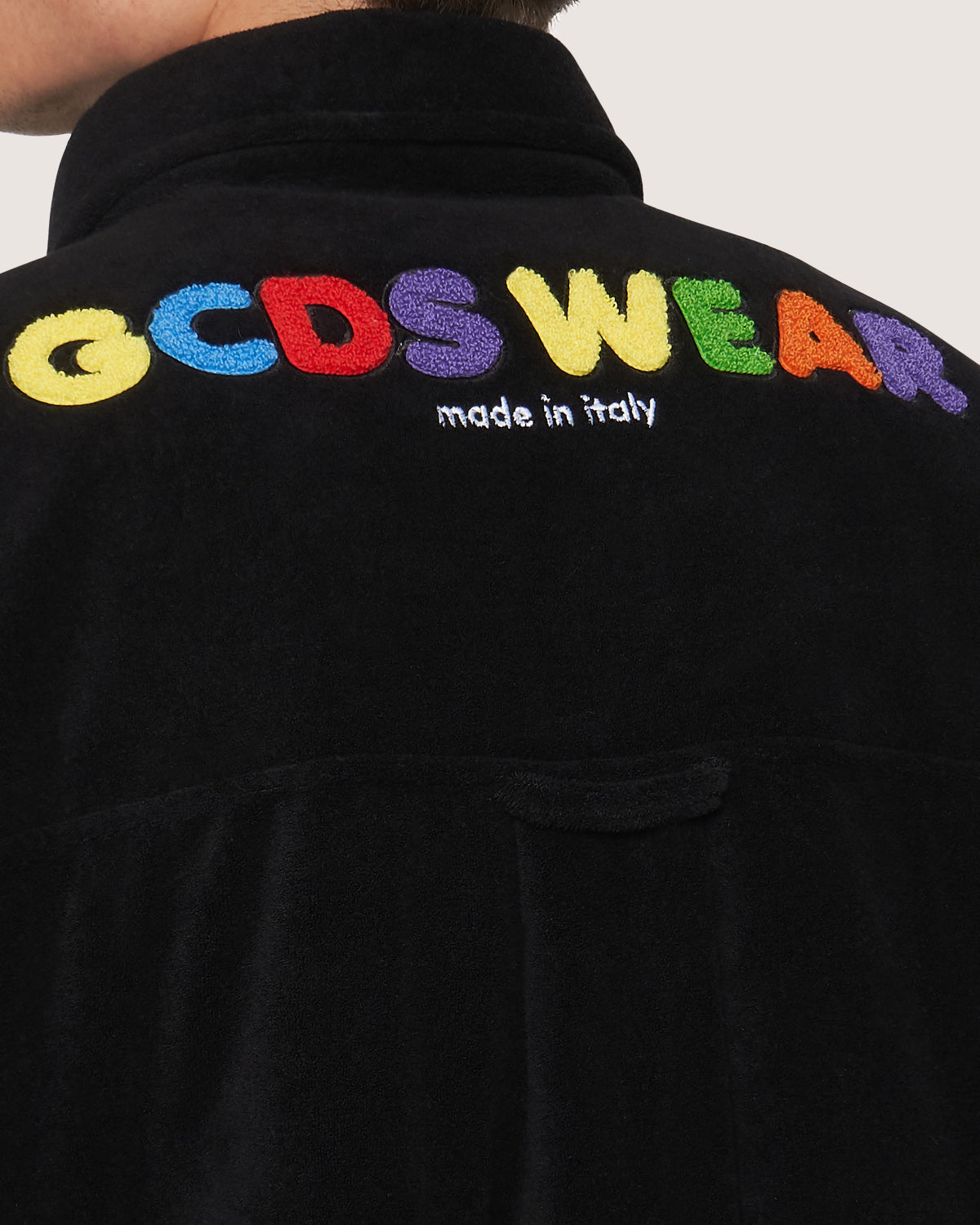 Long sleevs over shirt in terrycloth with GCDS patch applied on the front and logo in terrycloth stitch on the back.