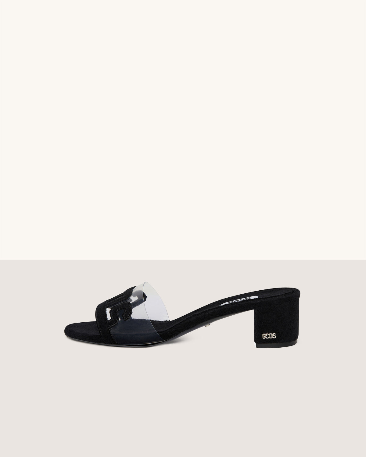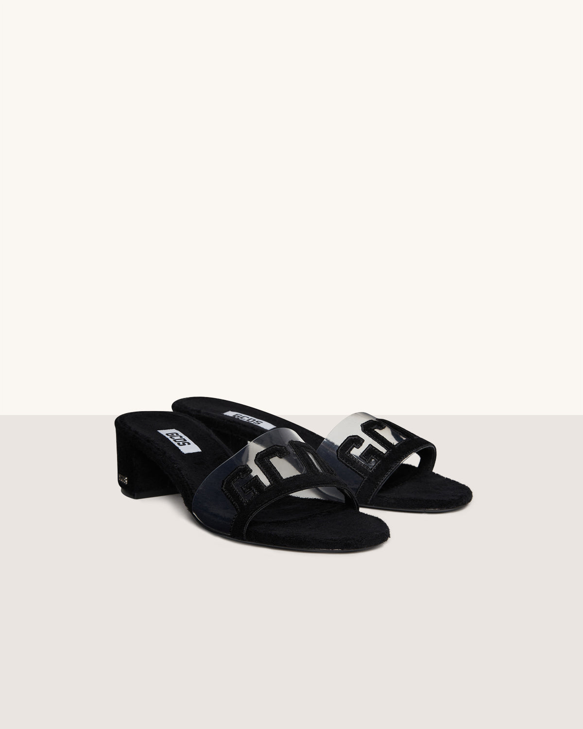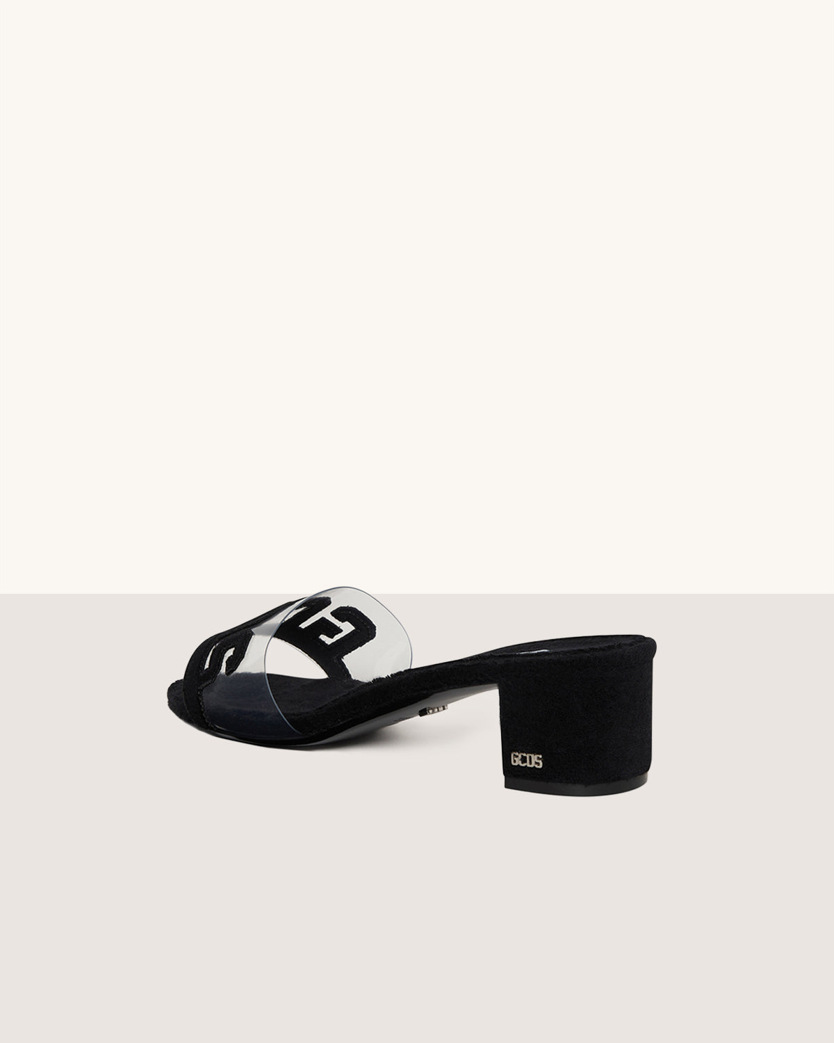 Sandal with GCDS logo band in PVC and embroidered terry. Heel height 5 cm, covered in terry cloth with metal logo insert.