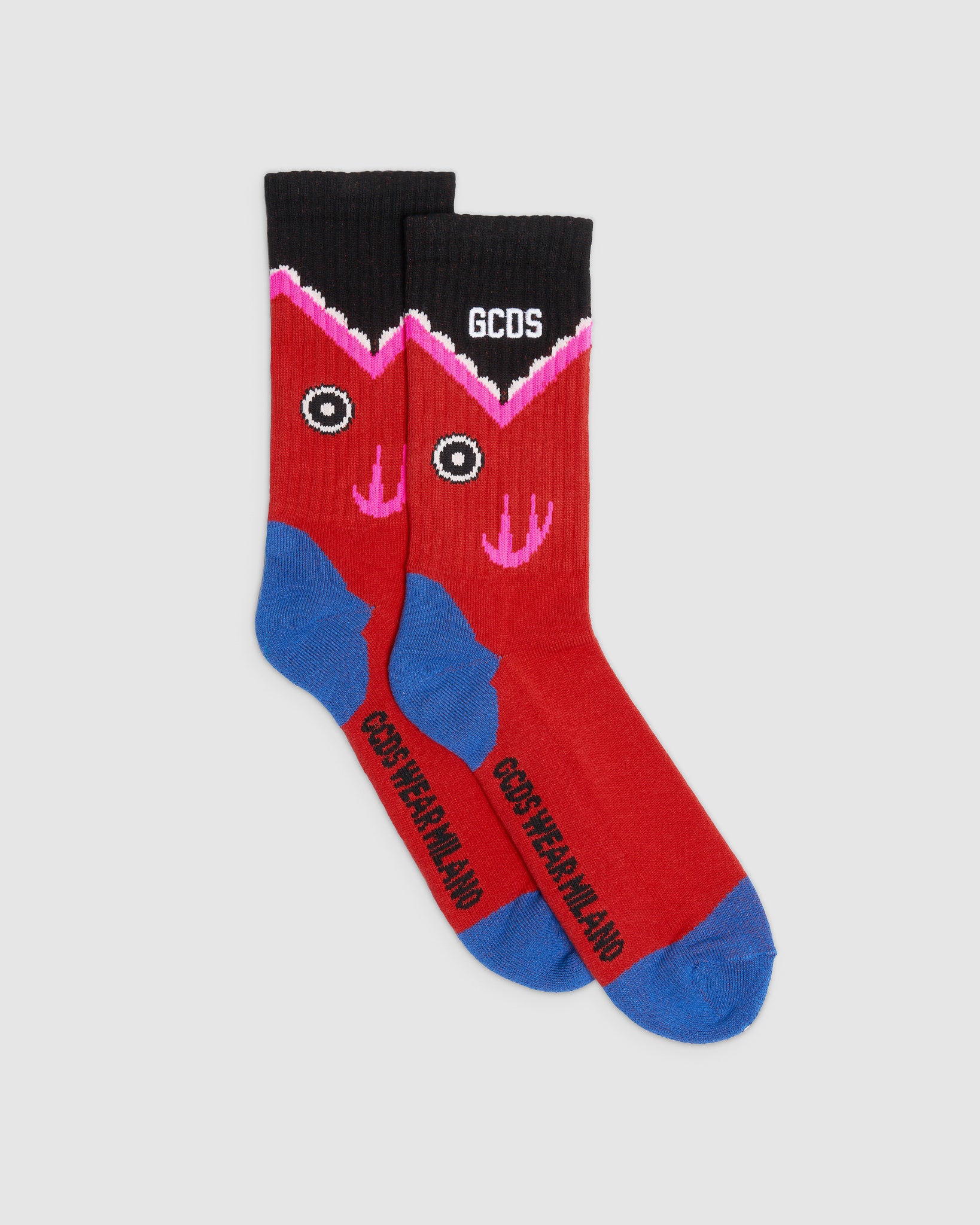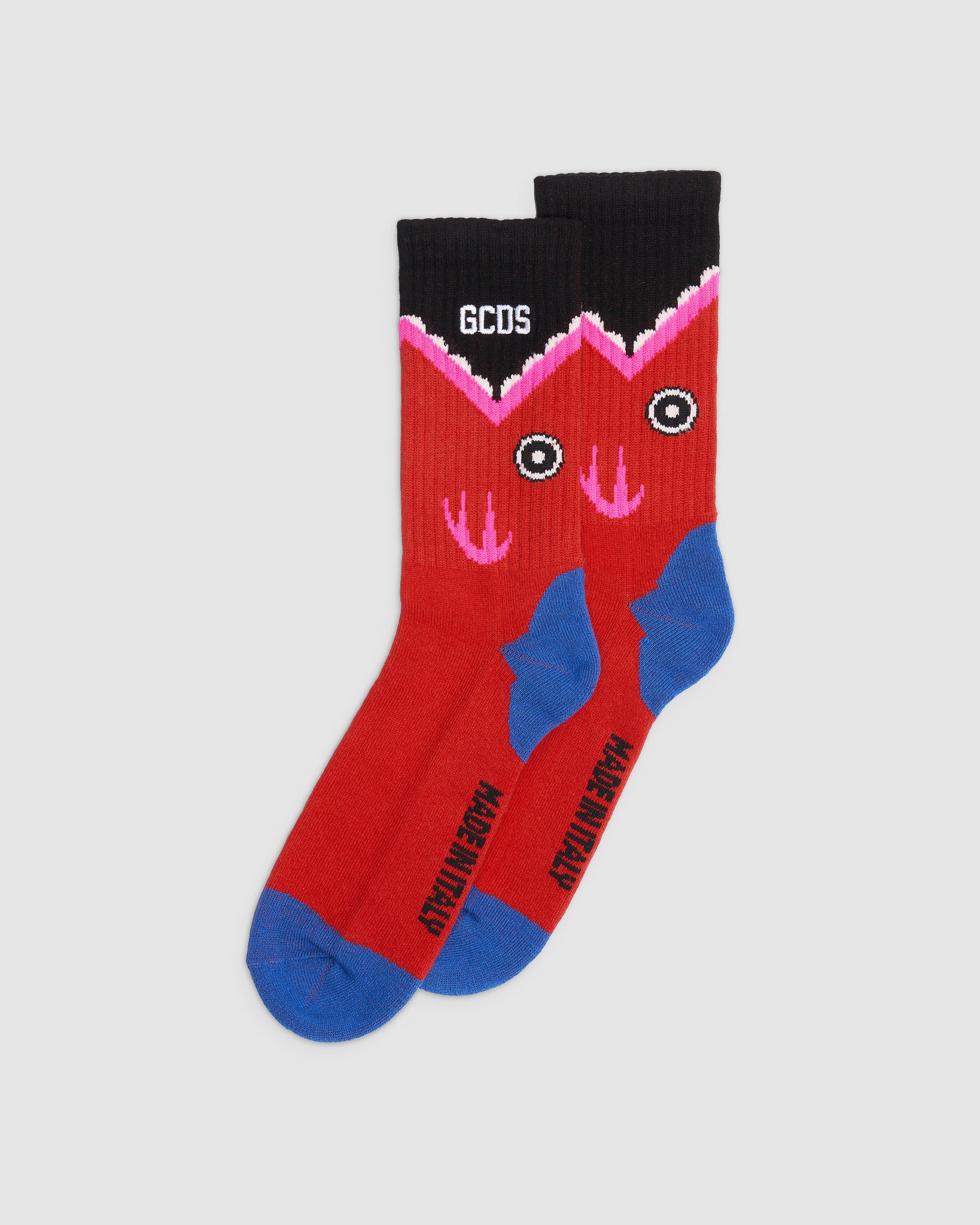 GCDS socks in cotton blend with inlaid fish and embroidered logo.