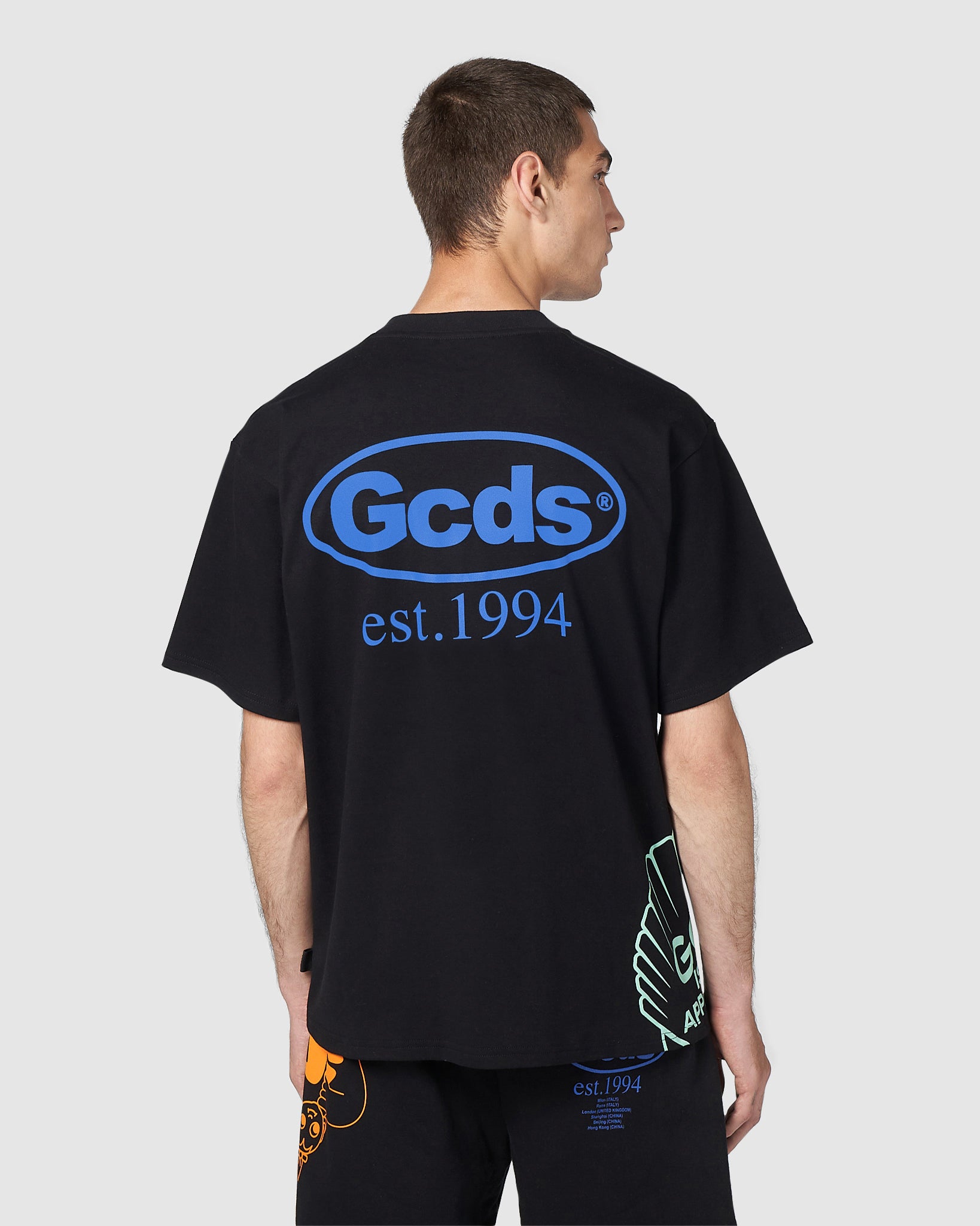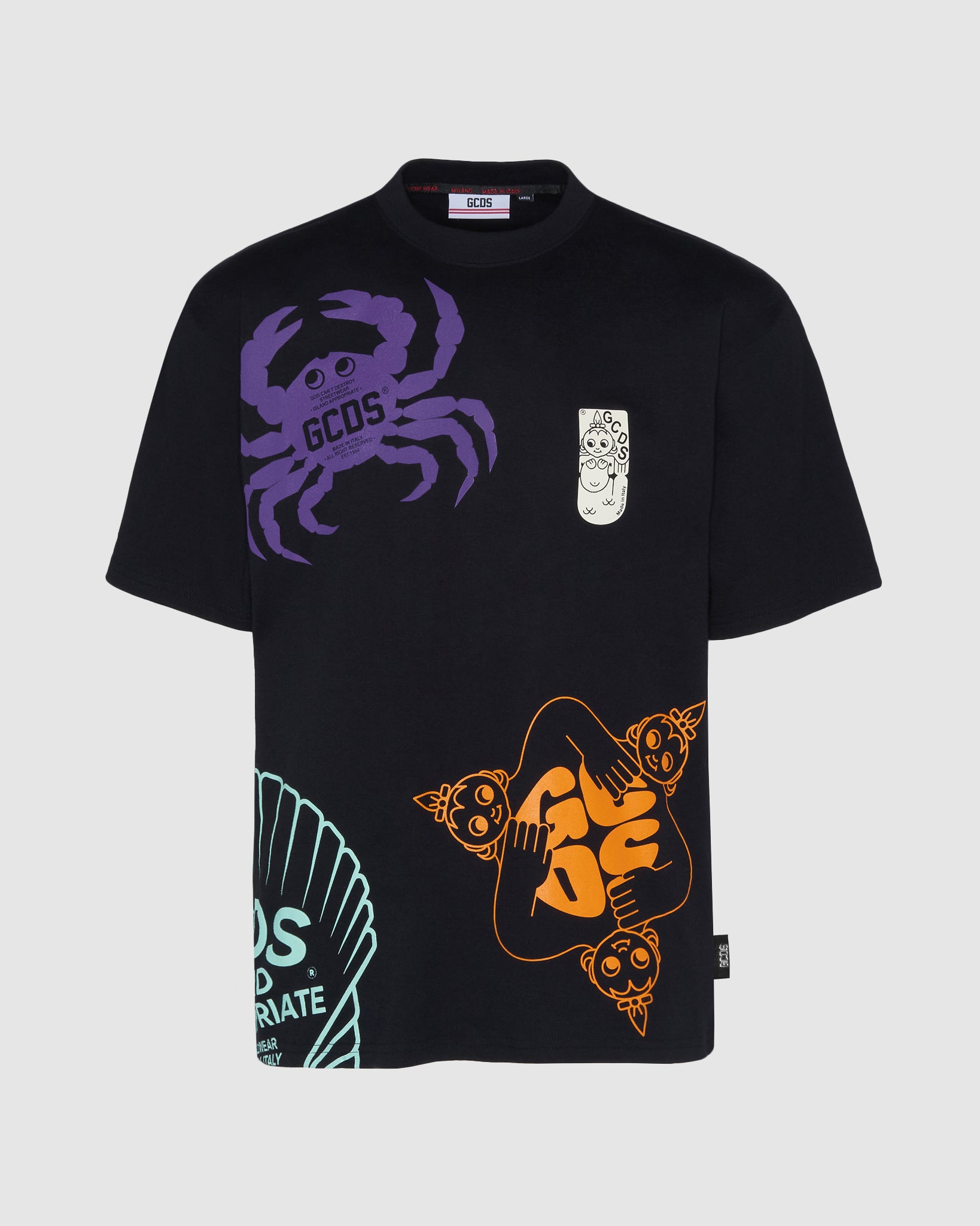Cotton GCDS T-shirt with Shell motif silk-screen print front and back. At the pocket height, silicone GCDS Mermaid patch. Classic cut, regular fit.