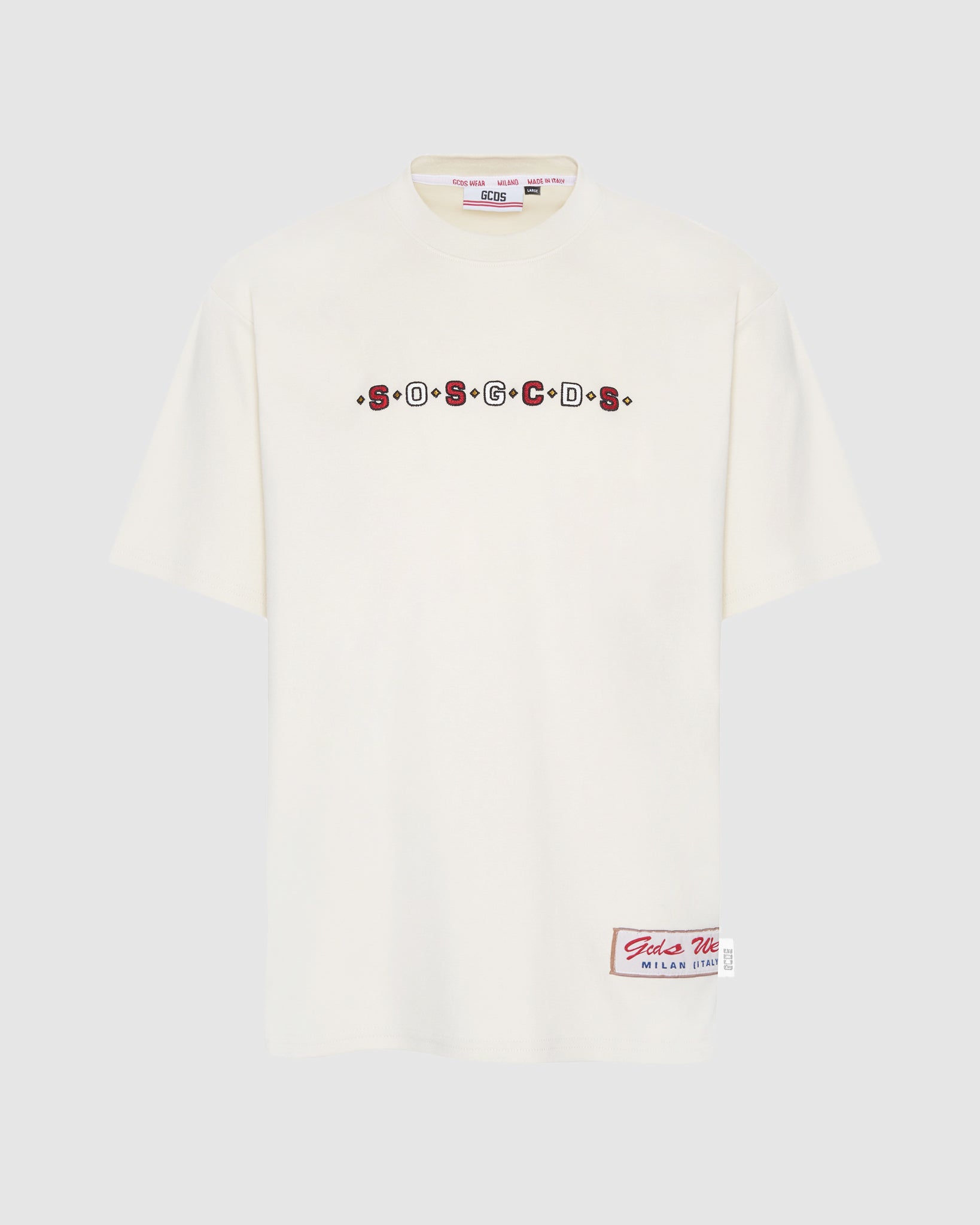 Cotton GCDS T-shirt. On the front, central embroidery and GCDS Wear patch in jacquard fabric. Classic cut, regular fit.