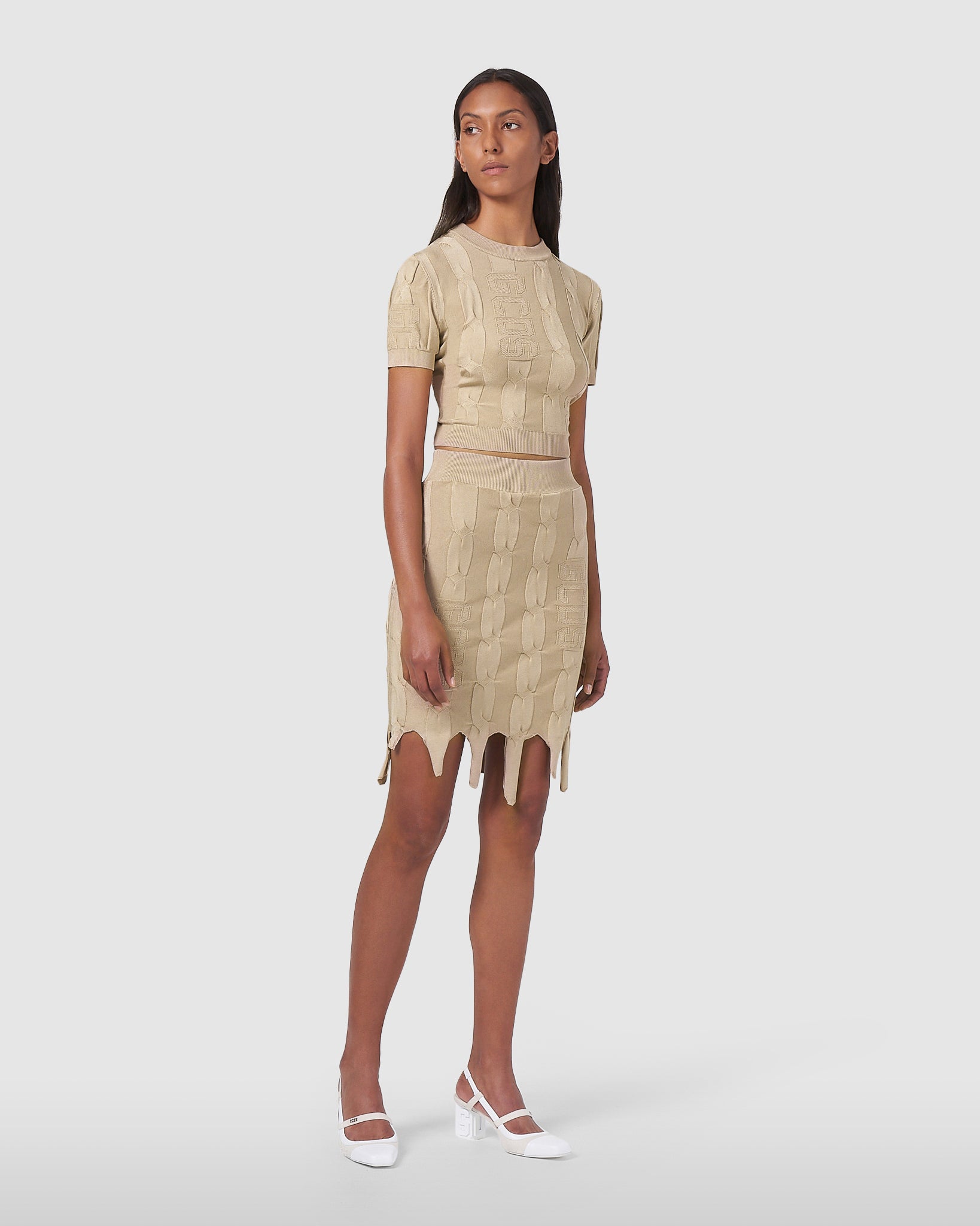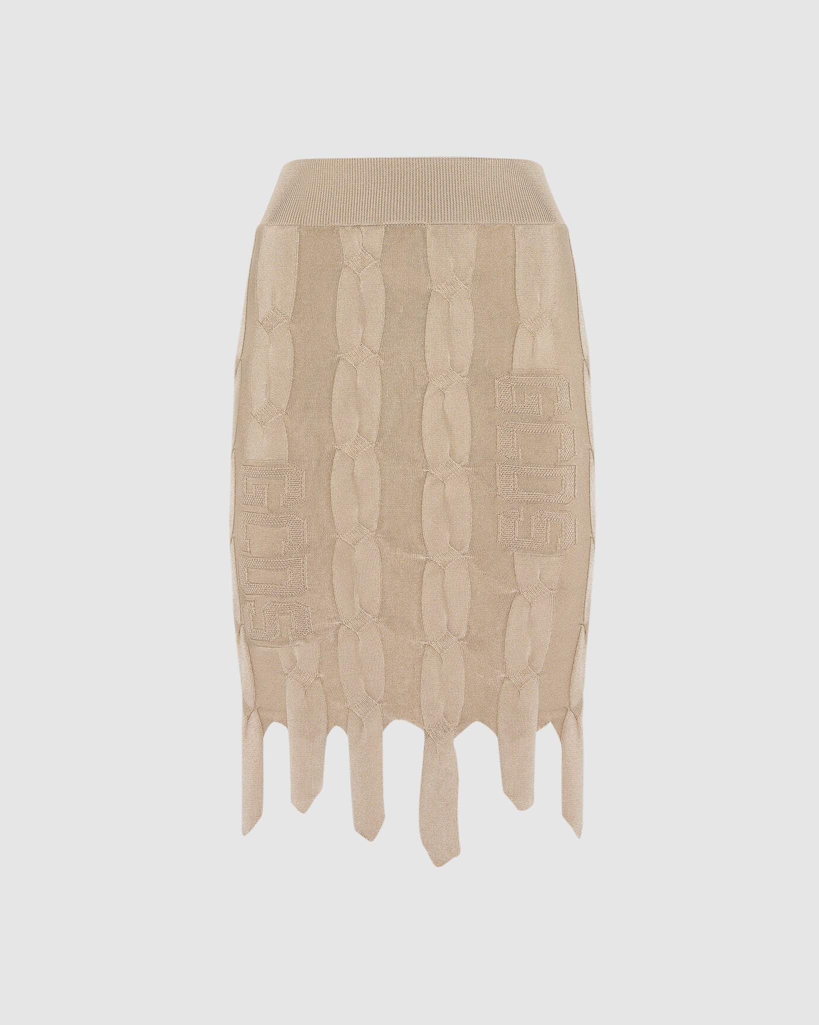 GCDS viscose mini skirt with mixed vertical logo braids fringing at the bottom.