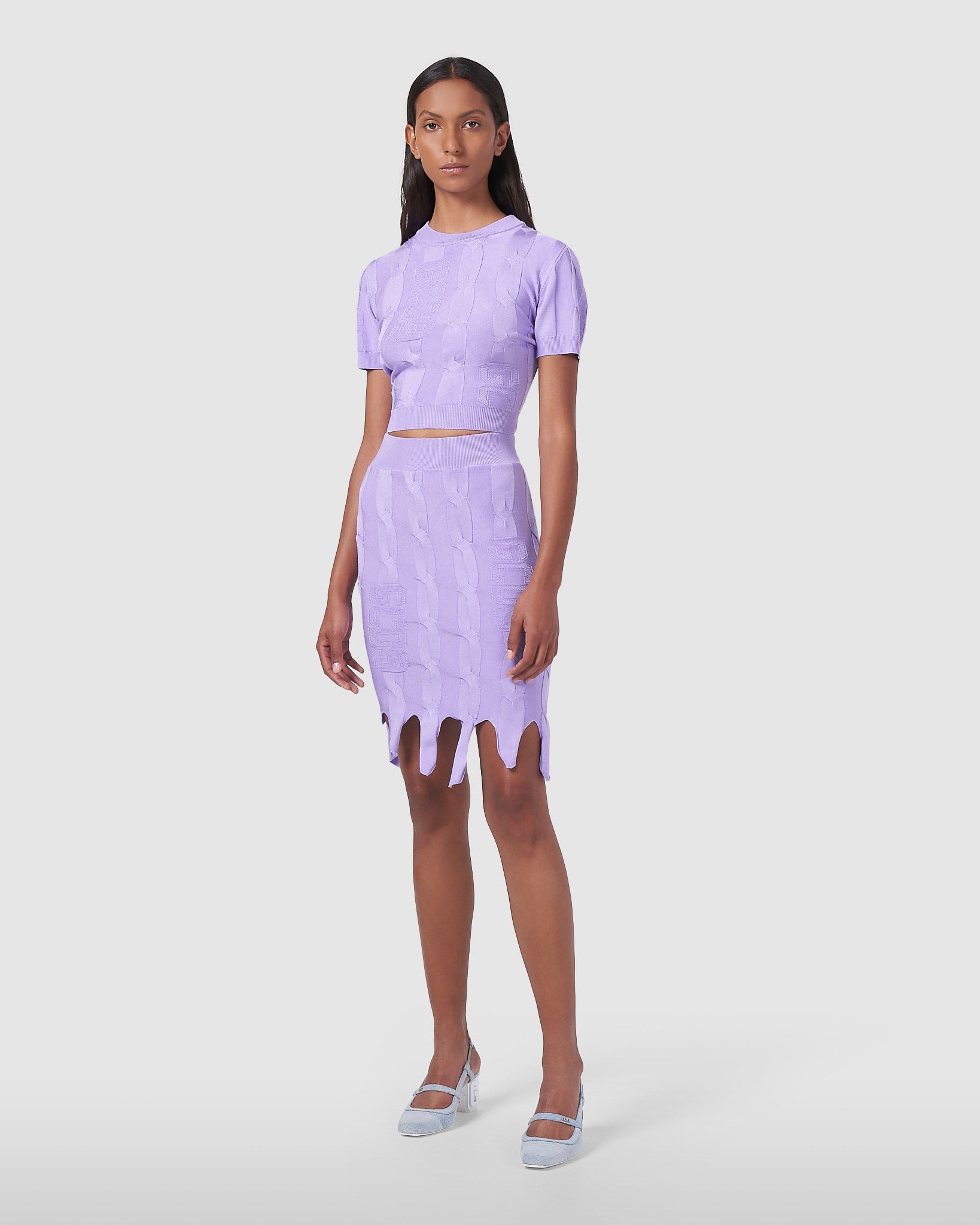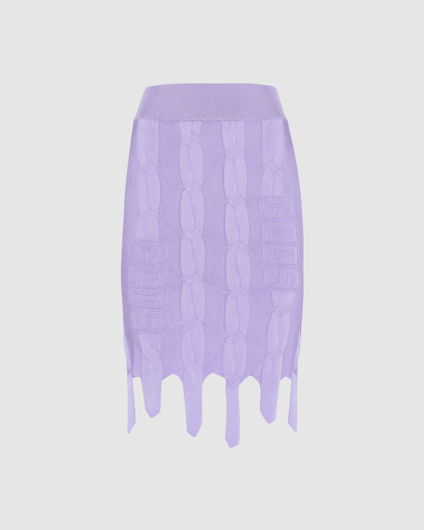 GCDS viscose mini skirt with mixed vertical logo braids fringing at the bottom.