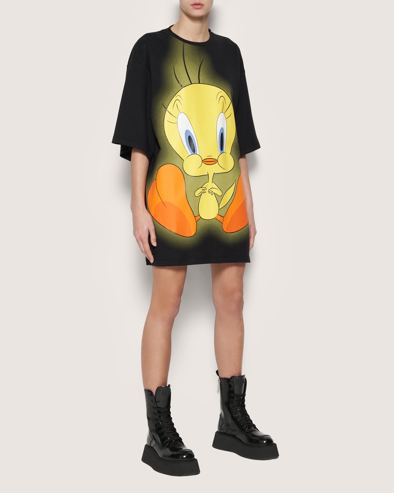 Maxi GCDS T-shirt with a digital Tweety print, part of the Looney Tunes collection. On the back, 3D silk-screened GCDS logo.